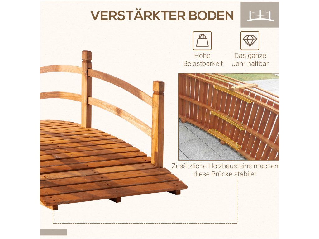 PEVNÁ KONSTRUKCE: Masivní jedlové dřevo tohoto malého mostu je robustní a odolné vůči povětrnostním vlivům.