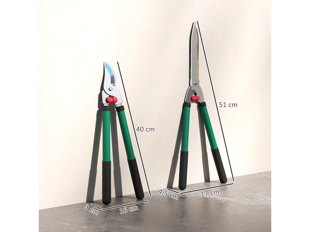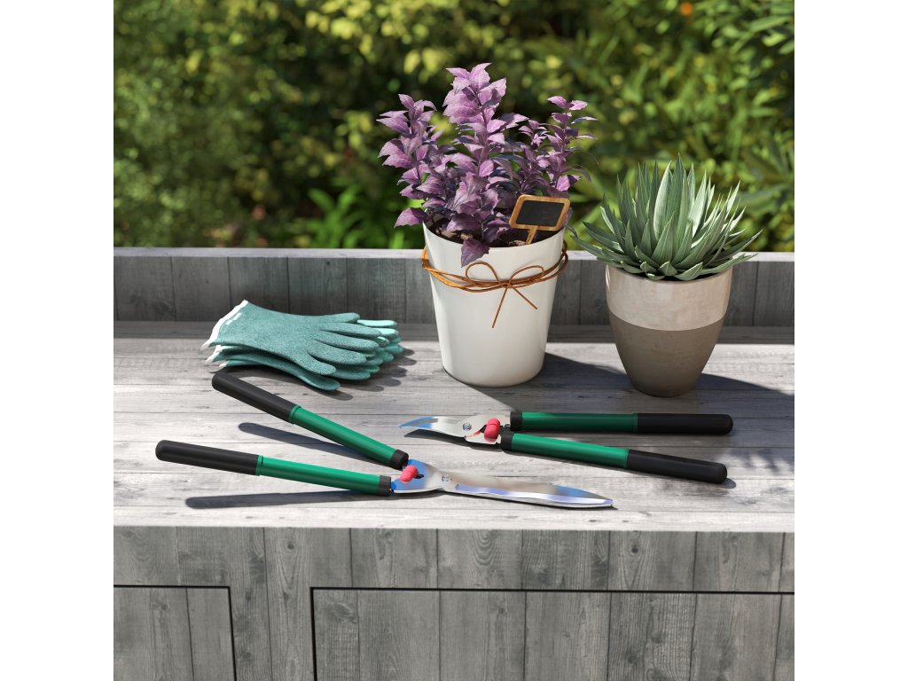 Snadno proměňte svou zahradu se sadou zahradních nůžek a nůžek na větve! Leštěné ocelové čepele bez námahy stříhají silné stonky a tvarují živé ploty. Rukojeti s měkkými plastovými úchyty nabízejí pohodlí a bezpečnost při prořezávání. Ideální pro všechny zahradní práce, od keřů až po větve stromů.