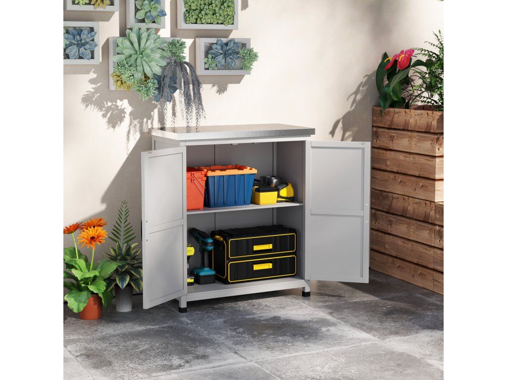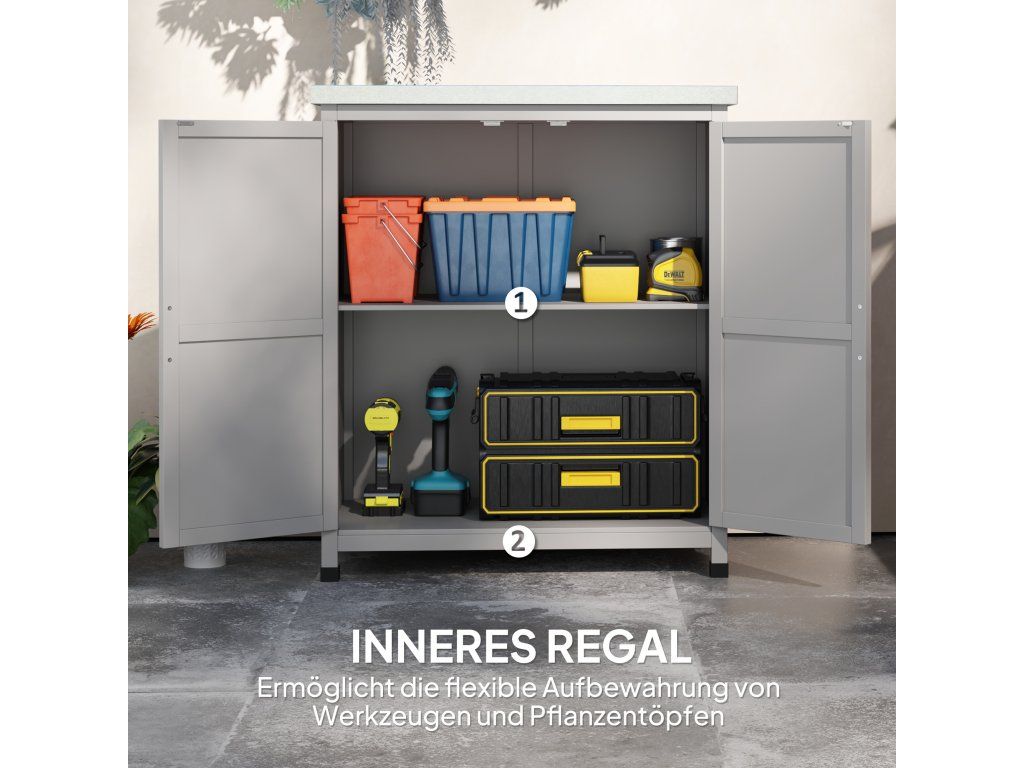 Zahradní skříňka s pracovní plochou a úložným prostorem | šedá