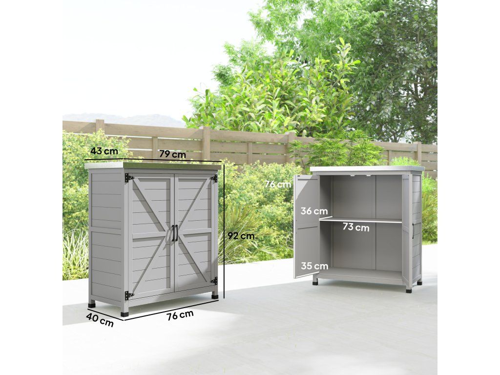 Všestranné využití: Slouží jako domek na nářadí nebo efektivní pracovní stůl pro optimalizaci funkčnosti vašeho venkovního prostoru.