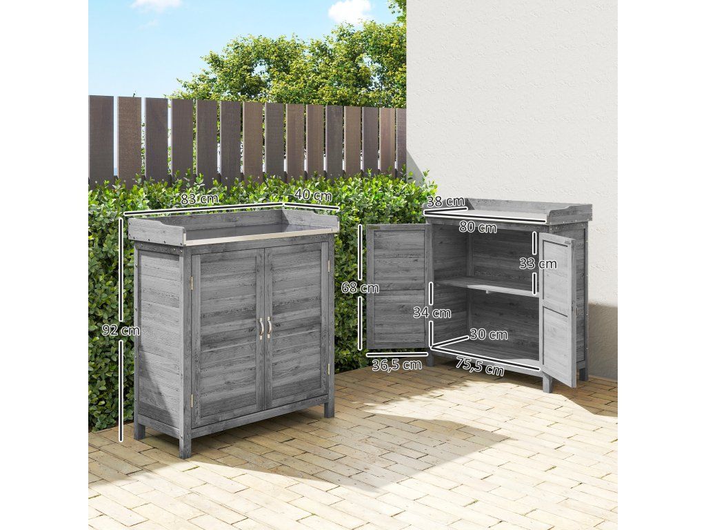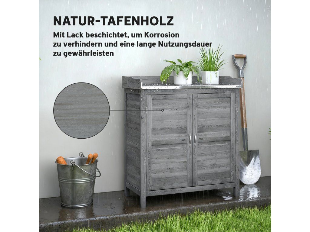 ✔ Zvýšený design zahradnického stolu zabraňuje pronikání půdní vlhkosti.