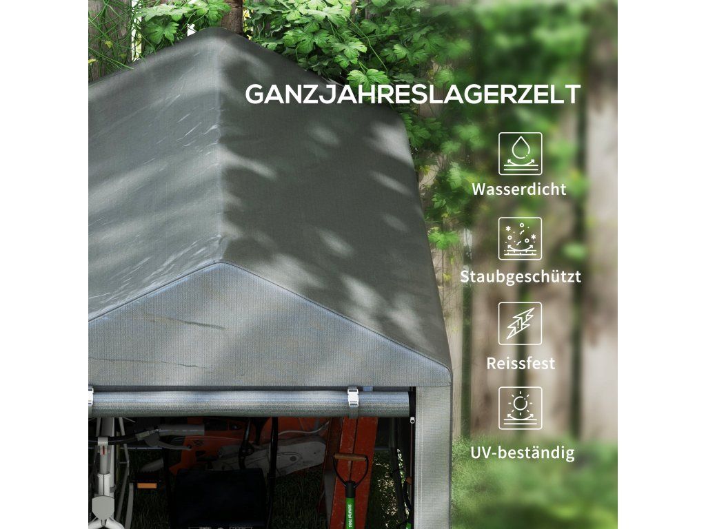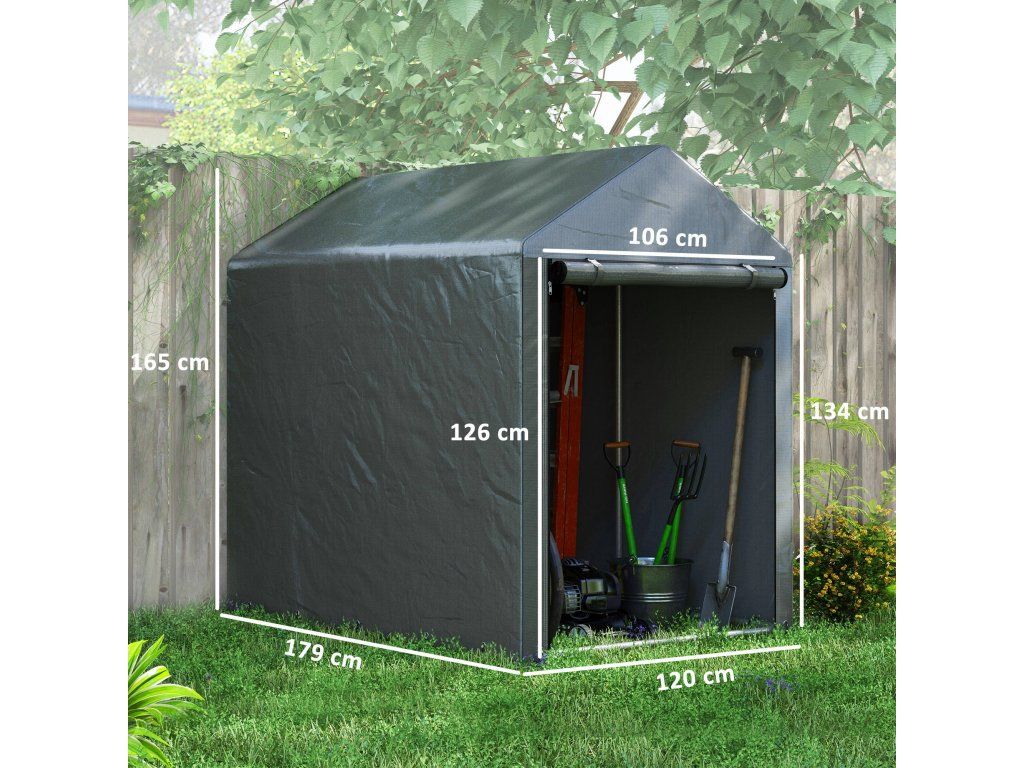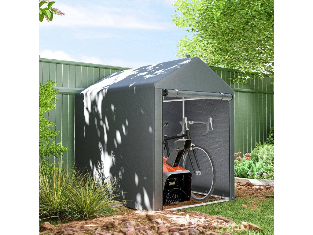 Objevte pohodlí zahradního domku, prostorného útočiště pro vaše kolo, motocykl nebo zahradní nářadí. Díky krytu odolnému proti UV záření a robustnímu rámu z pozinkované oceli chrání vaše věci před lehkým větrem, deštěm a nečistotami. Velký vchod na zip umožňuje snadný přístup a bezproblémové uložení. Ideální do jakéhokoli venkovního prostoru!