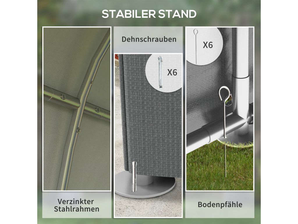 ✔ Zemní kotvy a šrouby zajišťují bezpečné ukotvení.