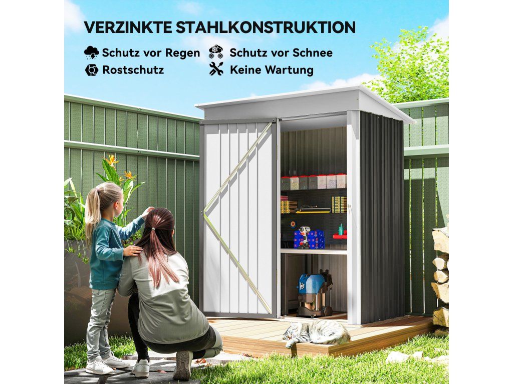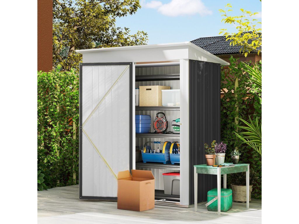 Udržujte si pořádek: Náš kompaktní kovový zahradní domek je ideálním řešením pro uložení vašeho zahradního nářadí, venkovních hraček, bazénového příslušenství a zařízení pro péči o trávník na vaší zahradě.