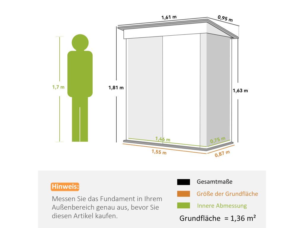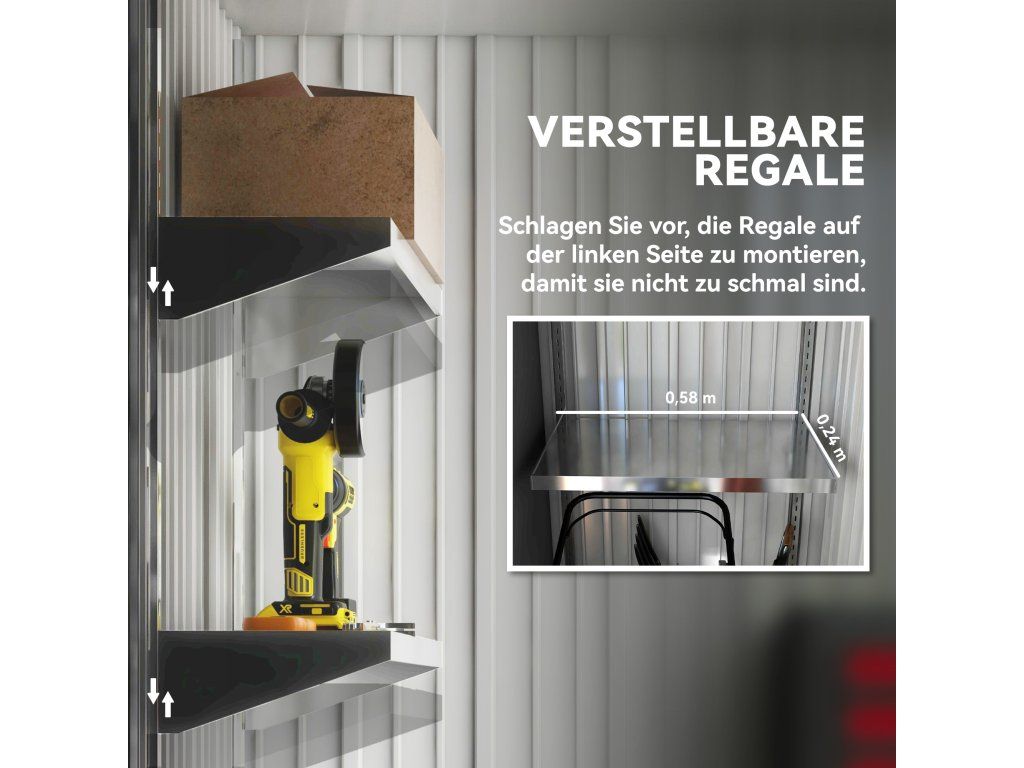 ✔ Upozorňujeme, že základová sada je součástí kovového zahradního domku, ale jsou vyžadovány desky na podlahu.