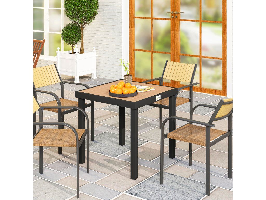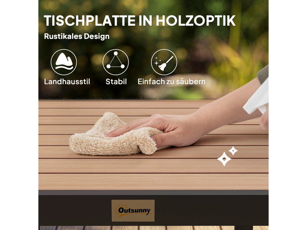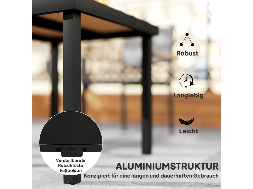 Vytvořte si jednoduchý, ale zároveň příjemný jídelní kout na jakékoli terase nebo balkonu s tímto okouzlujícím jídelním stolem. Robustní hliníkový rám s protiskluzovými nožičkami je stabilní a vyroben pro dlouhou životnost. Laťková deska stolu s imitací dřeva dodá vaší terase přirozený vzhled. Dodejte svému venkovnímu prostoru trvalou krásu, styl a eleganci s tímto nezbytným kusem nábytku pro jakýkoli venkovní obytný prostor.