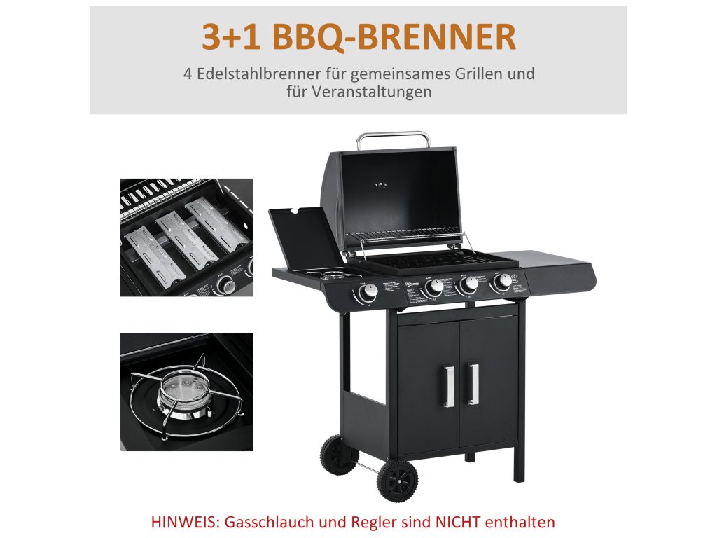 ✔ Robustní konstrukce s odolným kovem, grilem s porcelánovým smaltem a hořáky z nerezové oceli.