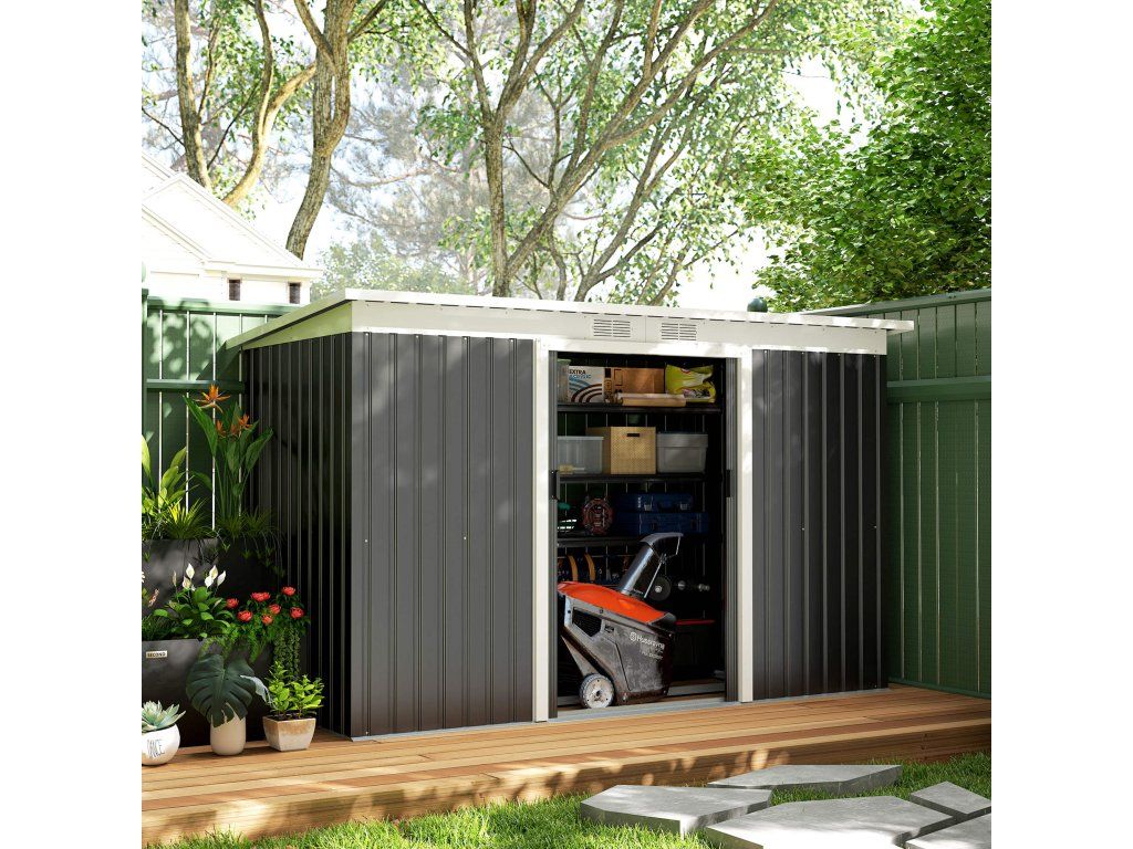 Zahradní domek s posuvnými dveřmi 280 x 130 x 172 cm | tmavě šedý