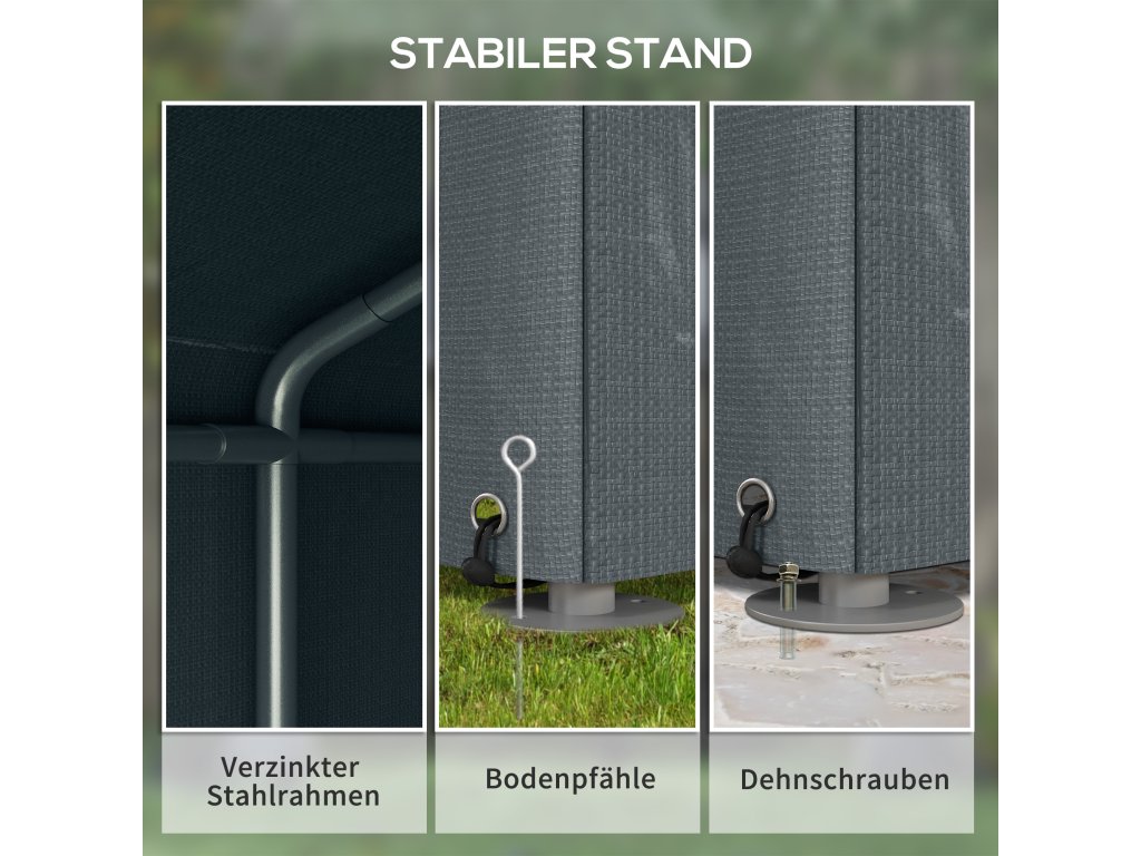 ✔ Zemní kotvy a šrouby zajišťují bezpečné ukotvení.