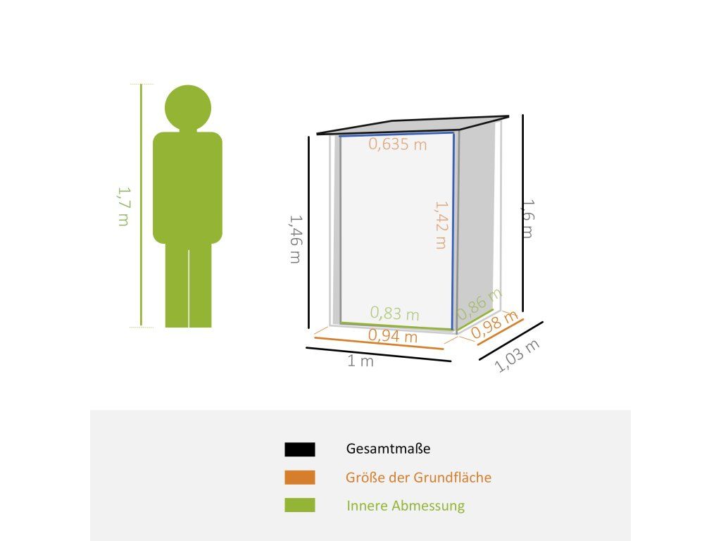 Ocelová zahradní bouda 100 x 103 x 160 cm | tmavě šedá