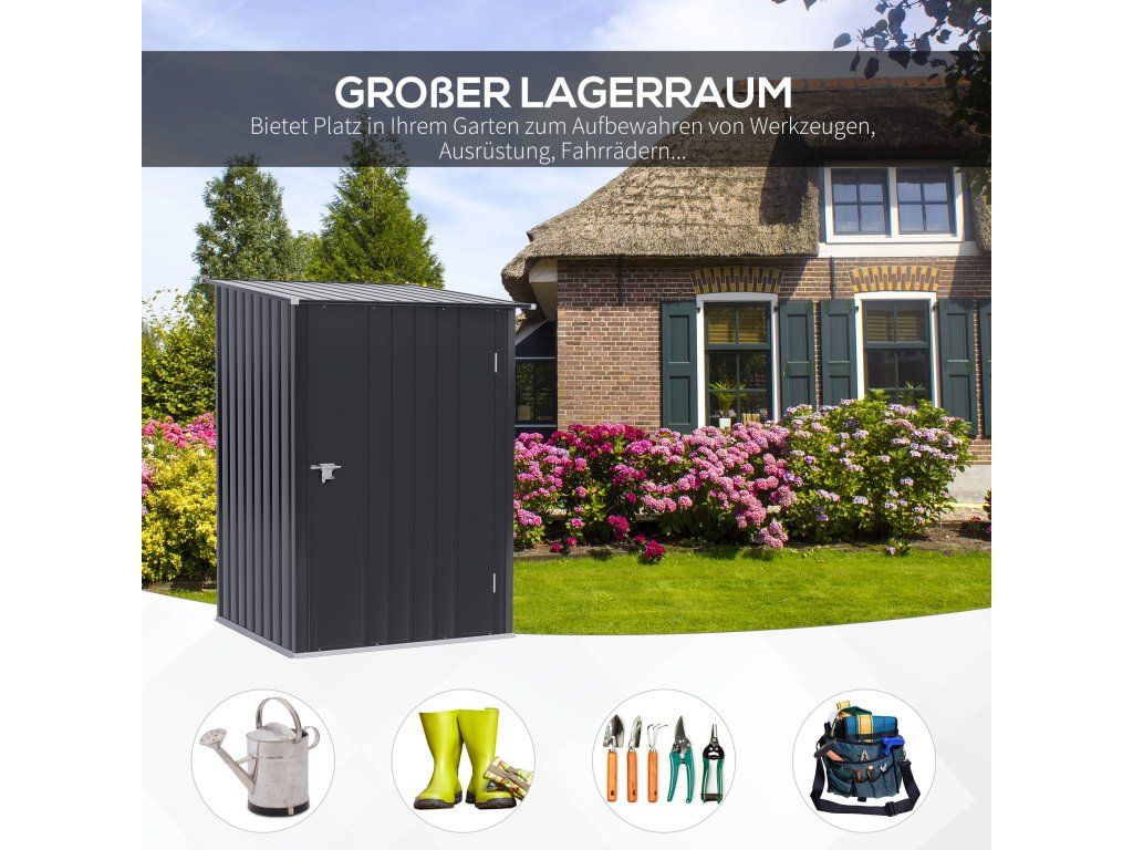 Vytvořte si na zahradě rajský pořádek s tímto velkým zahradním domkem! Navzdory svému kompaktnímu designu nabízí dostatek prostoru pro širokou škálu vybavení a nářadí. Tento zahradní domek je vyroben z robustní oceli a opatřen odolným nátěrem, takže vám bude spolehlivě sloužit po mnoho let. Šikmá střecha umožňuje volný odtok dešťové vody a uzamykatelné dveře zabraňují vniknutí zvířat.