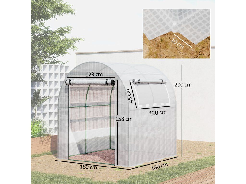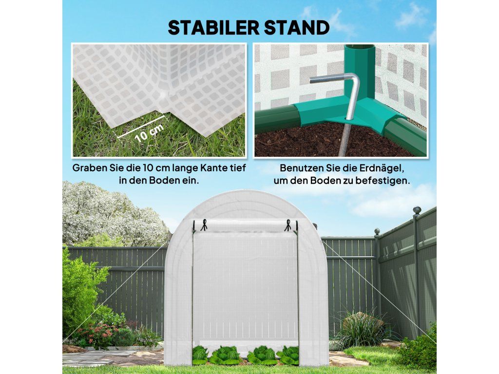 Prodlužte si vegetační sezónu s přenosným skleníkem. Robustní ocelový rám polystyrenového tunelu s kotevními lany a kolíky poskytuje bezpečnou oporu. Tento polystyrenový tunel o rozměrech 6 x 6 stop nabízí dostatek prostoru pro vaše rostliny a lze jej přizpůsobit vašim představám. Je vybaven rolovacími dveřmi a bočním rolovacím oknem pro snadný přístup a optimální větrání.