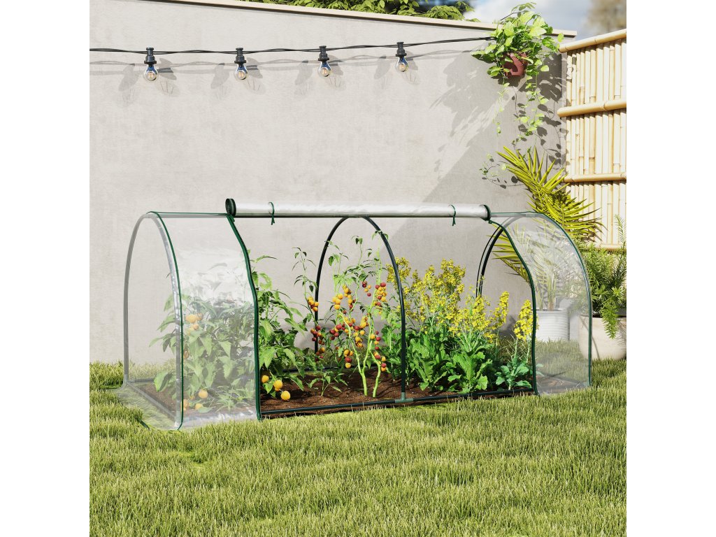 Všestranné použití: Díky nízké hmotnosti a snadné montáži je skleník vhodný na balkony, terasy, dvorky, zahrady a další místa. Široké dveře lze otevřít a srolovat pro lepší větrání.