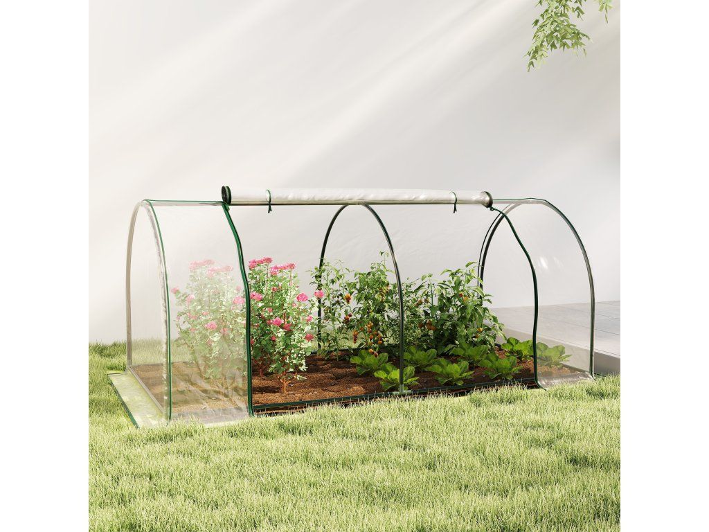 Všestranné použití: Díky nízké hmotnosti a snadné montáži je skleník vhodný na balkony, terasy, dvorky, zahrady a další místa. Široké dveře lze otevřít a srolovat pro lepší větrání.