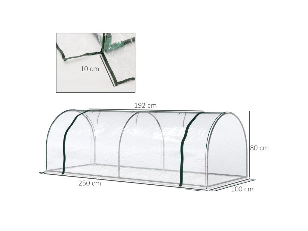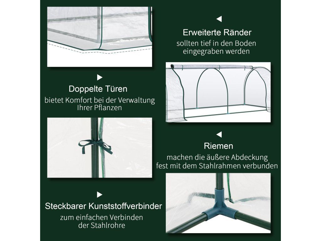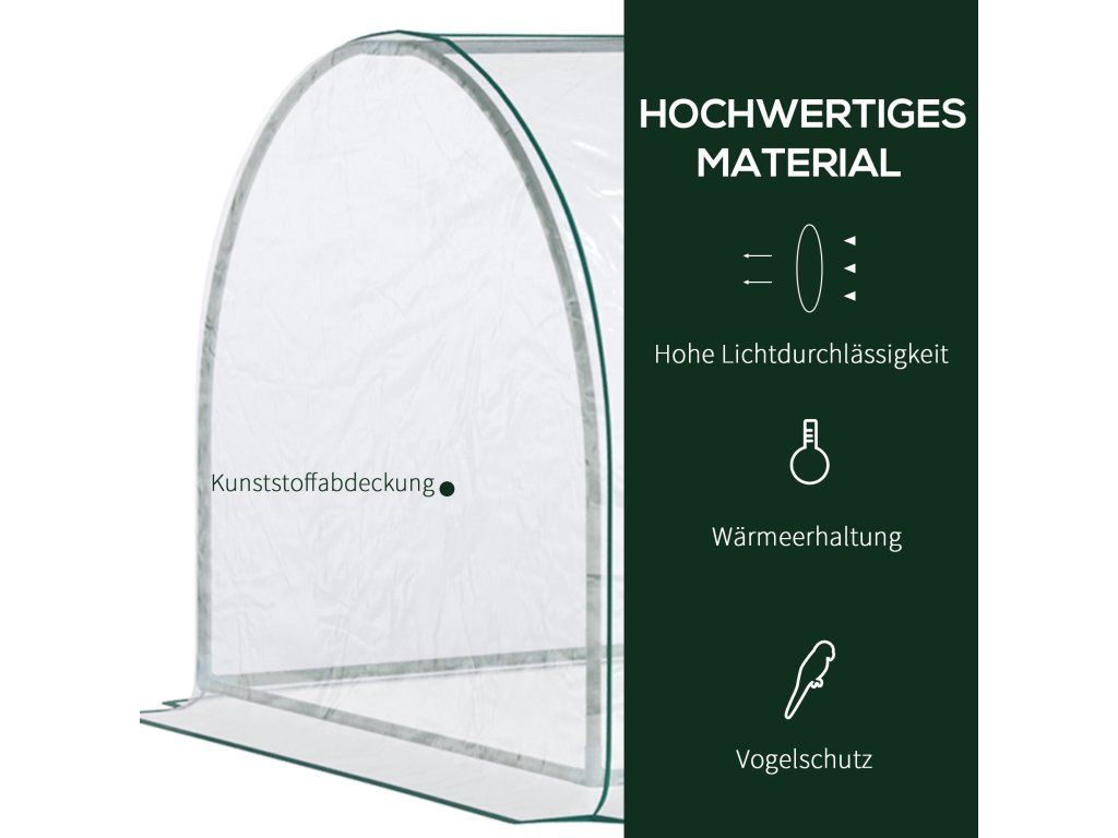 Robustní konstrukce: Skleník se skládá z robustního, práškově lakovaného ocelového rámu a odolné plastové fólie – ideální pro celoroční použití ve vaší zahradě. Základní rám z ocelových trubek poskytuje dodatečnou stabilitu.
