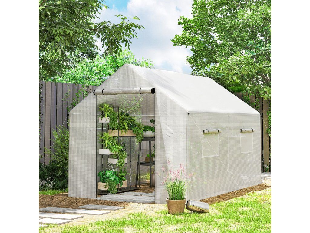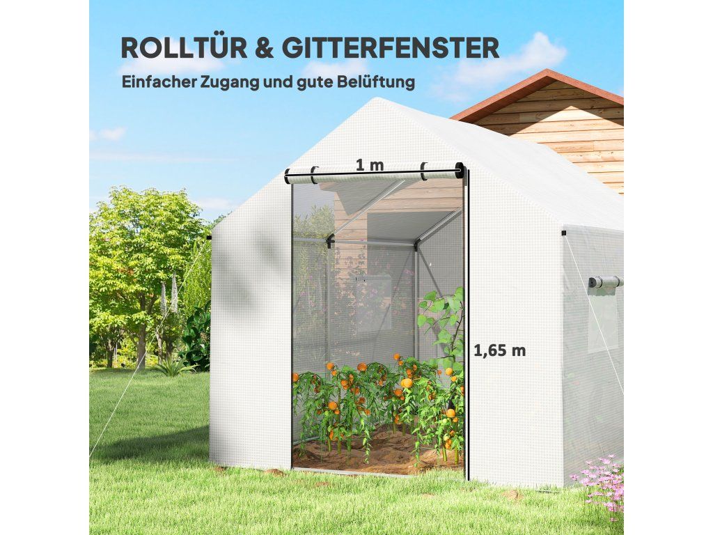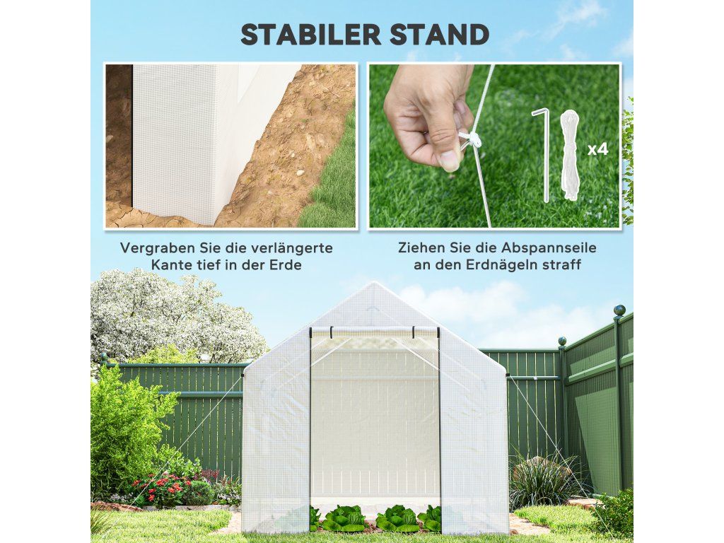 Široké dveře a síťovaná okna: Velkoryse dimenzované rolovací dveře se zipem a čtyři okna poskytují snadný přístup do vašeho skleníku a zajišťují křížové větrání, což vám umožňuje regulovat teplotu a vlhkost dle potřeby. Síťové sítě na oknech umožňují větrání a zabraňují vniknutí nežádoucích návštěvníků.