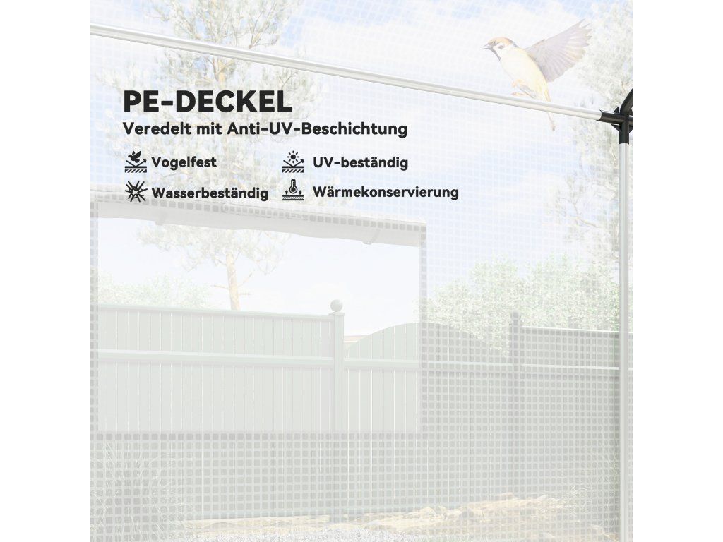 ✔ PE kryt poskytuje uvnitř ochranu před UV zářením a povětrnostními vlivy, což umožňuje rostlinám prospívat.