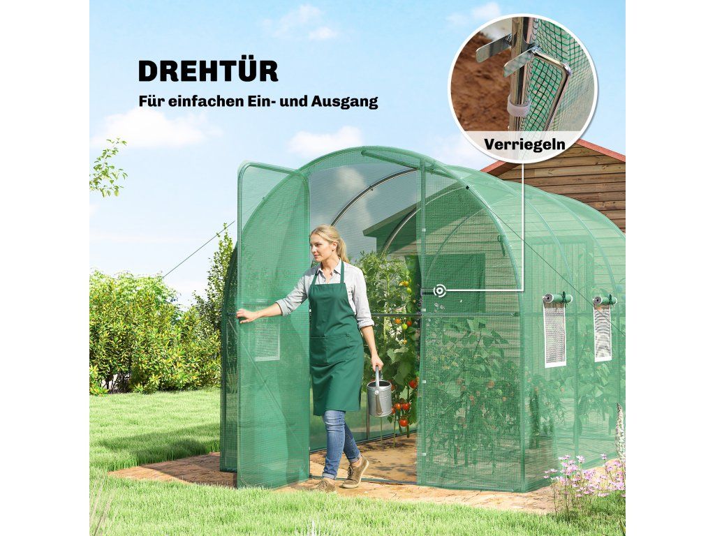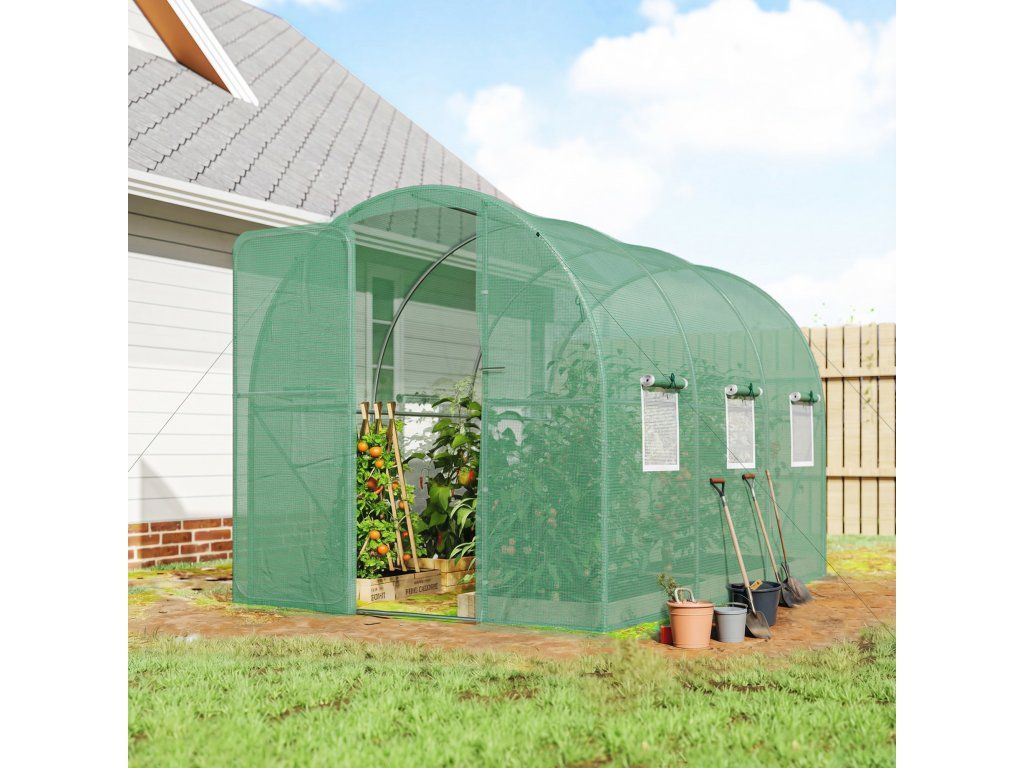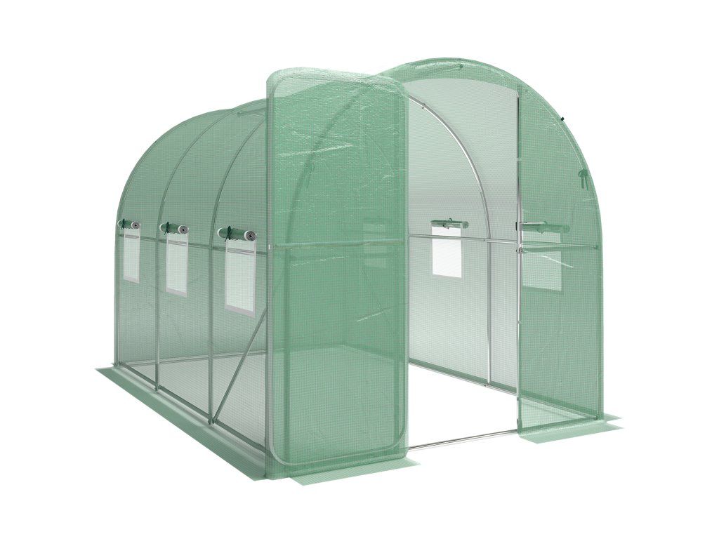 Fóliový skleník s uzamykatelnými dveřmi | zelený