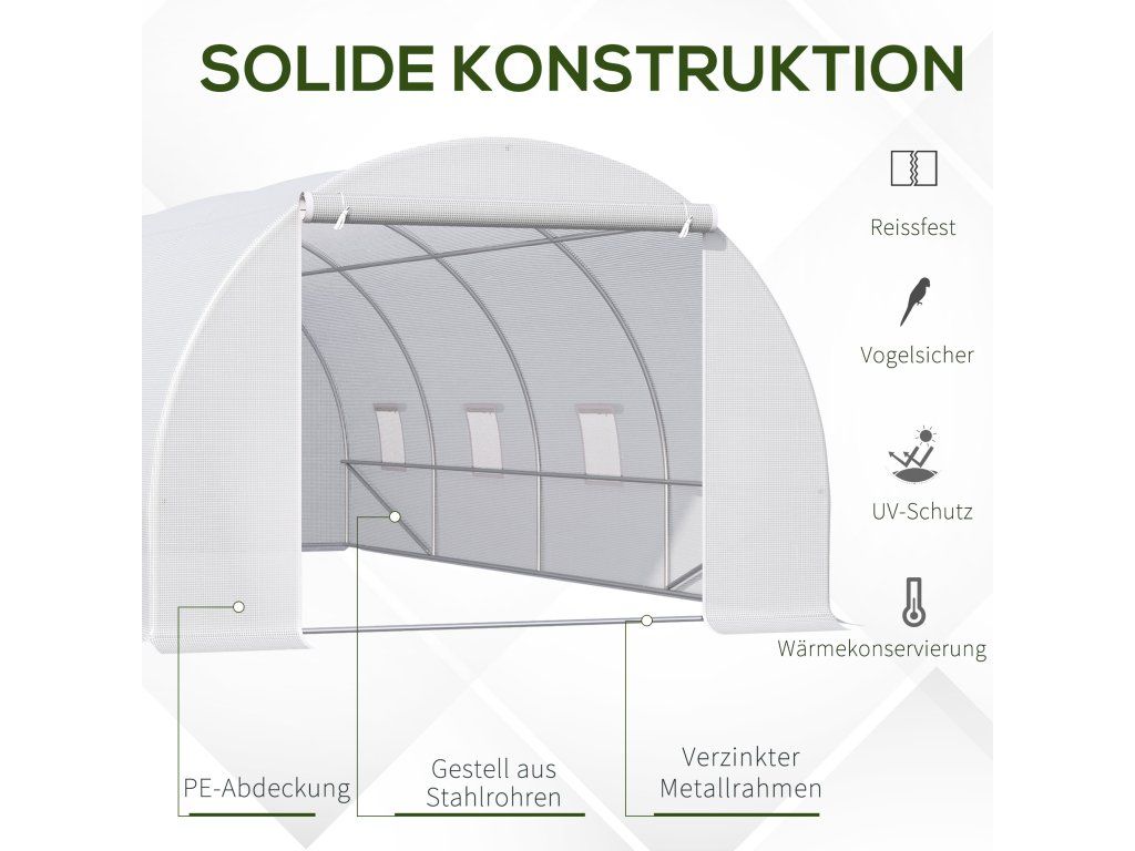Tento velký fóliový skleník nejenže nabízí vašim oblíbeným rostlinám dostatek prostoru pro růst a prospívání, ale také je chrání před nepříznivým počasím a ptáky. Skleník je odolný a vybaven mrazuvzdornou, odolnou proti roztržení a UV záření odolnou fólií. Lze jej v případě potřeby rychle sestavit a rozebrat. Je také vybaven okny pro regulaci proudění vzduchu a robustním kovovým rámem pro stabilitu.