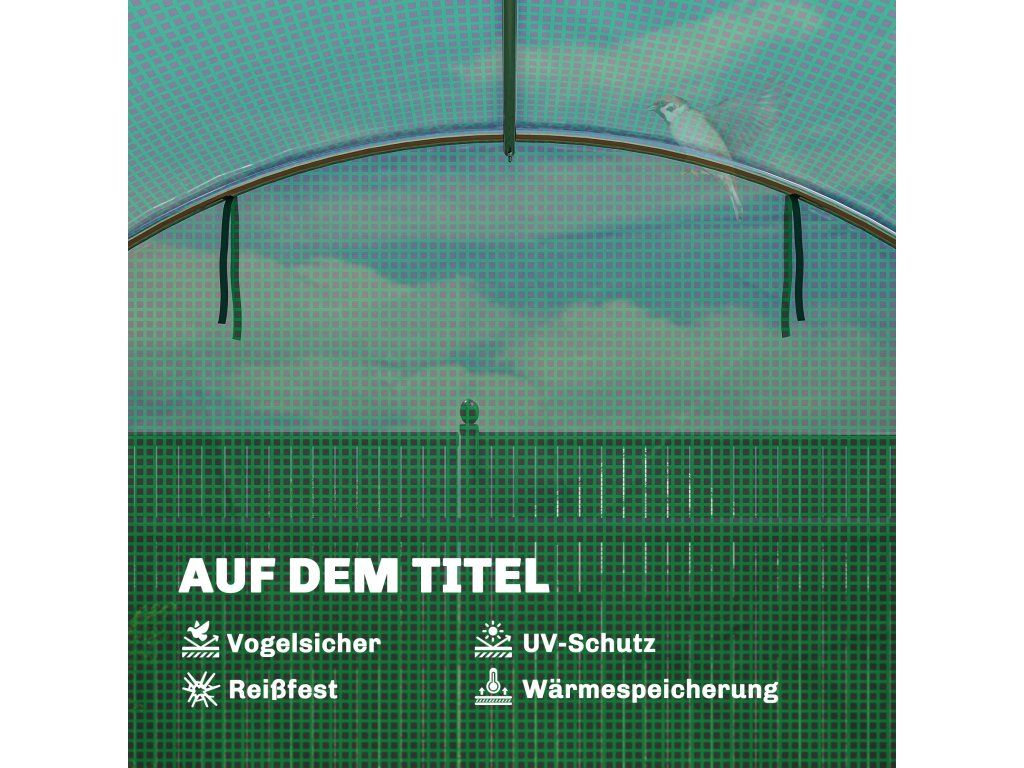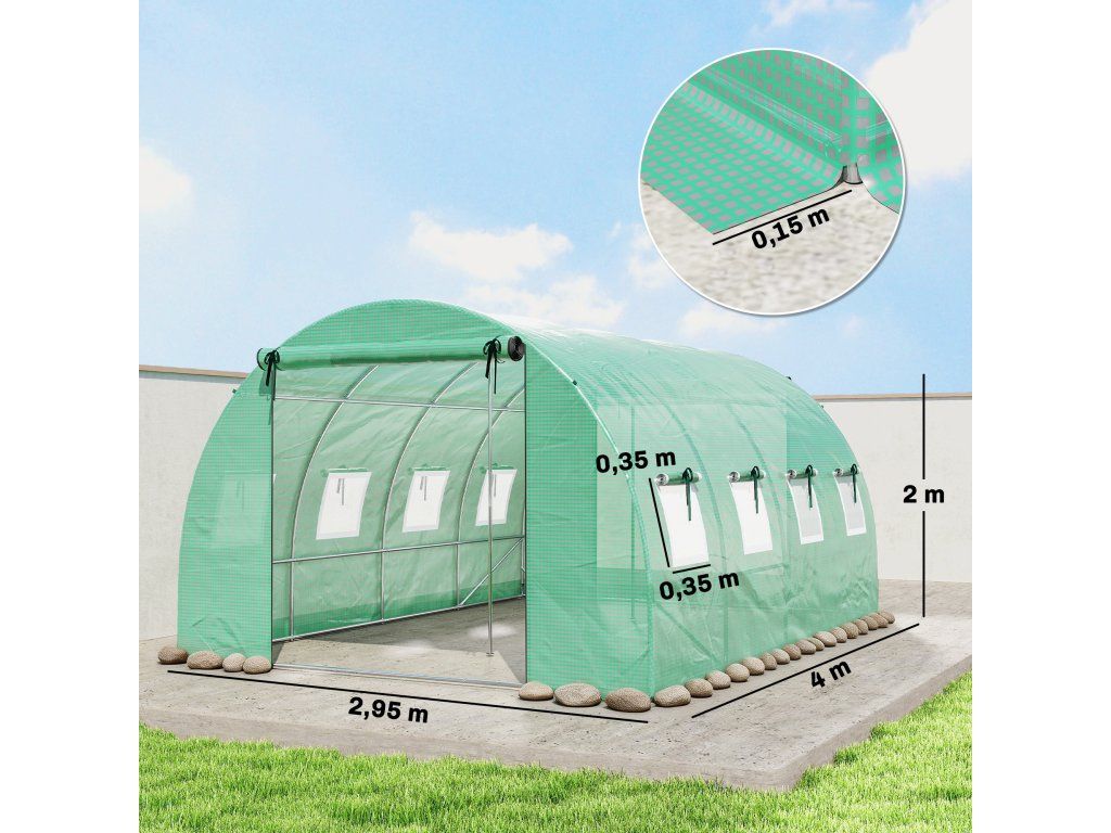PE kryt: PE materiál o gramáži 140 g/m² je vodoodpudivý, odolný vůči UV záření a izolační. 15 cm prodloužené okraje polytunelu zvyšují stabilitu, izolaci a utěsnění tím, že jej lze zatížit nebo zahrabat do země.