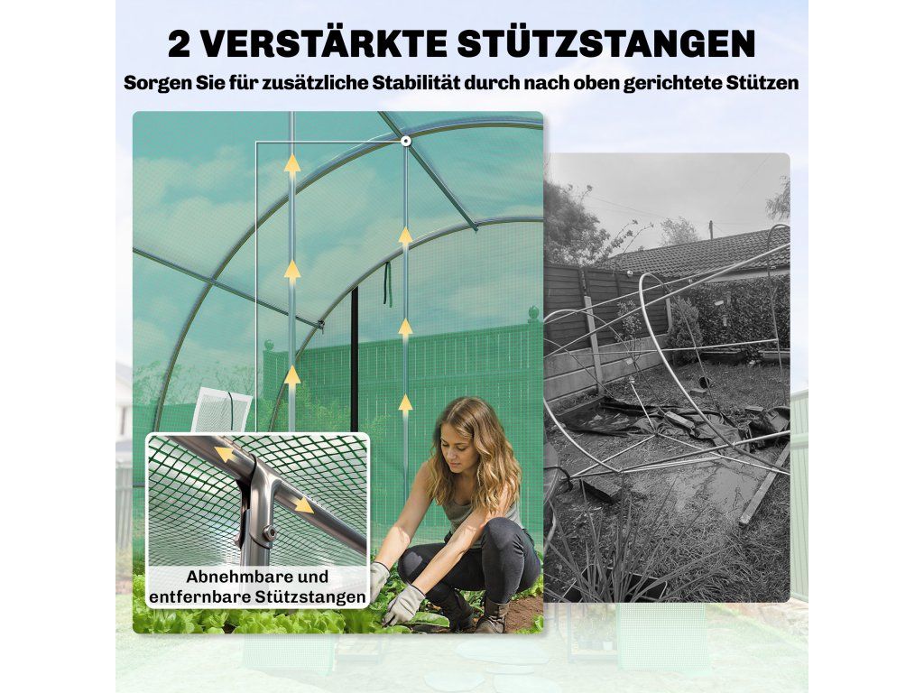 Vylepšená konstrukce rámu: Tento skleník je vyroben z pozinkovaného ocelového rámu s diagonálními výztuhami a má dvě odnímatelné podpěrné tyče, které dále stabilizují rám a zvyšují jeho robustnost.