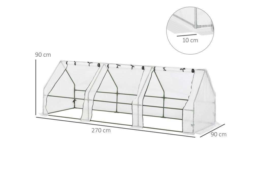 Fóliovník se 3 rolovacími okny 270 x 90 x 90 cm | bílý