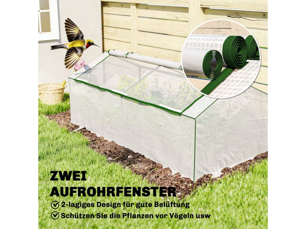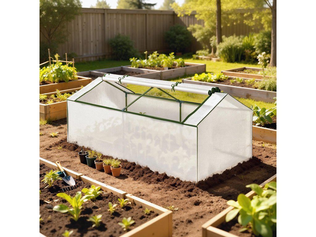 Mini skleník: Skvělý způsob, jak prodloužit vegetační období účinnou ochranou rostlin před chladem a zároveň ochránit ptáky. Tento prostorově úsporný skleník je ideální pro pěstování ovoce, zeleniny a květin v malých zahradách nebo na balkonech.