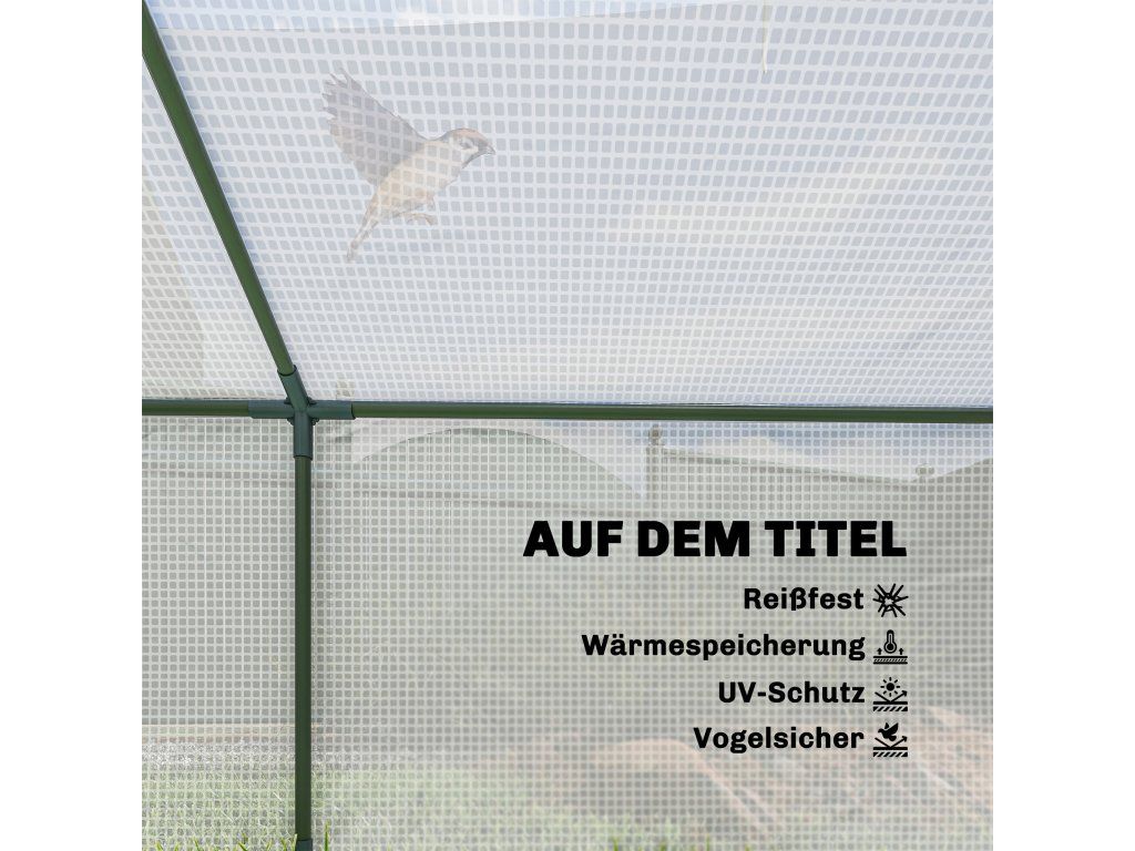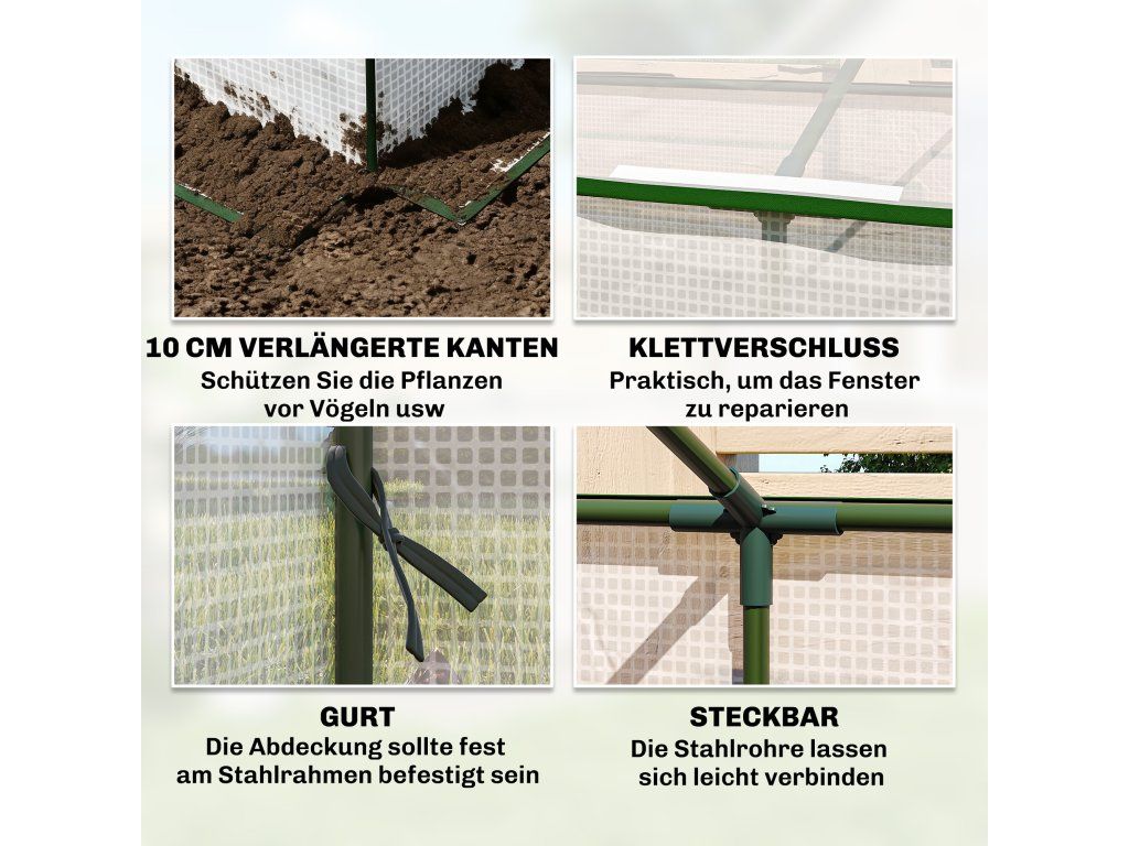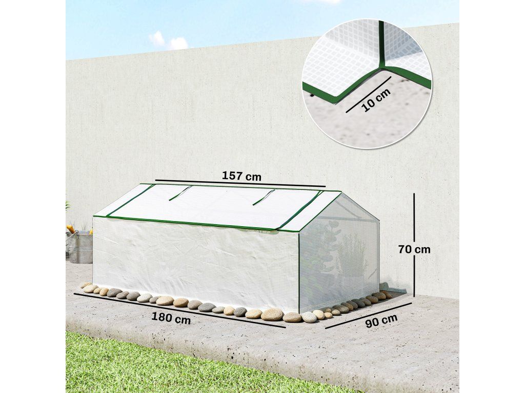 Dvouvrstvá okna: Fóliový skleník je vybaven dvěma dvouvrstvými síťovanými okny, která zlepšují cirkulaci vzduchu uvnitř a zároveň chrání rostliny před vnějšími vlivy. Praktická rolovací konstrukce na zip usnadňuje použití.
