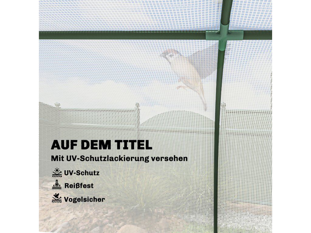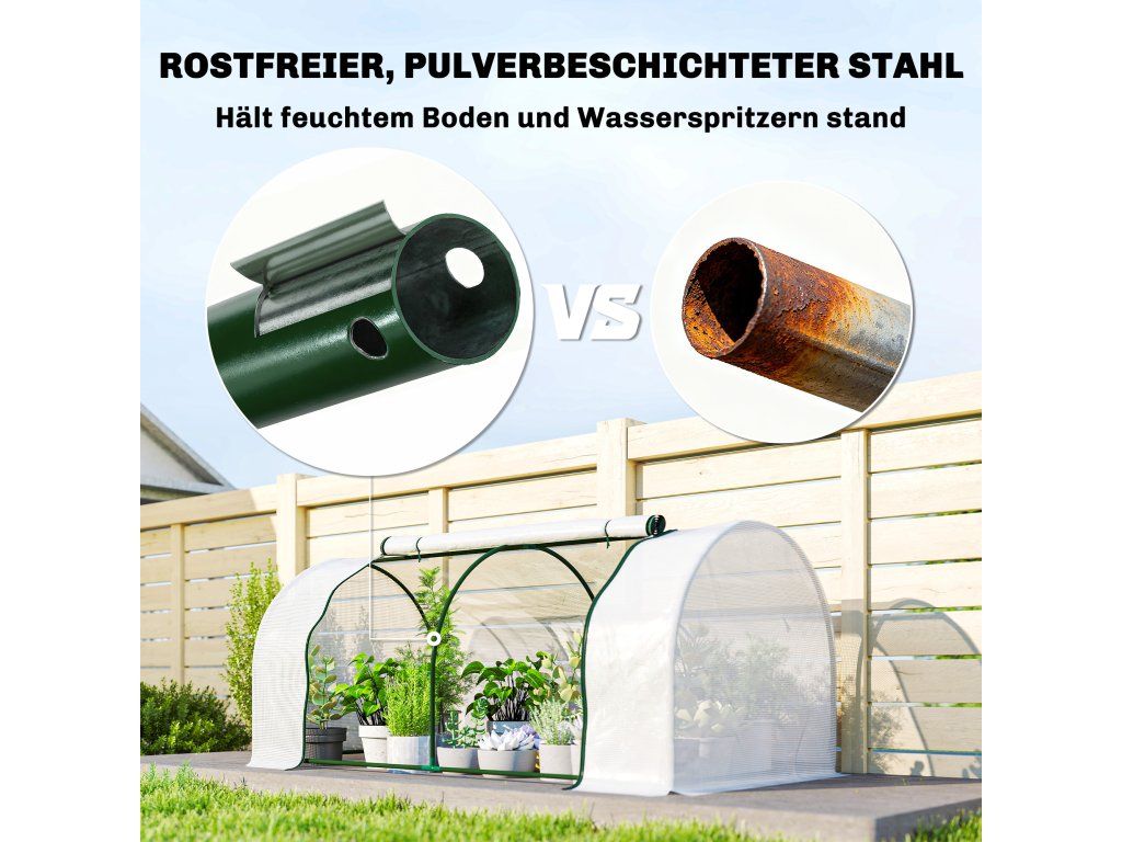 Vhodné pro venkovní použití: Robustní ocelový rám skleníku na rajčata zajišťuje stabilitu. PE kryt s 10cm násypem zajišťuje vzduchotěsné utěsnění a dodatečnou stabilitu.