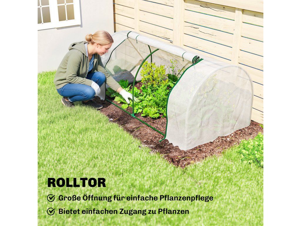Celoroční zahradničení: Náš kompaktní skleník prodlužuje vaši vegetační sezónu tím, že účinně chrání rostliny před mrazem, větrem, silným deštěm a zvířaty. Ideální pro pěstování ovoce, zeleniny a květin.