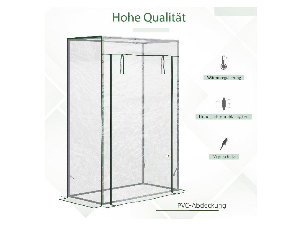 Tento vysoký a úzký skleník je vynikající volbou pro vaši zahradu, balkon nebo malé prostory a umožňuje vám pěstovat rostliny úsporným způsobem. Robustní ocelový rám a odolný plastový kryt zajišťují pevnost a spolehlivost. Tento polystyrenový skleník pomůže vašim rostlinám lépe růst a usnadní a zpříjemní zahradničení.