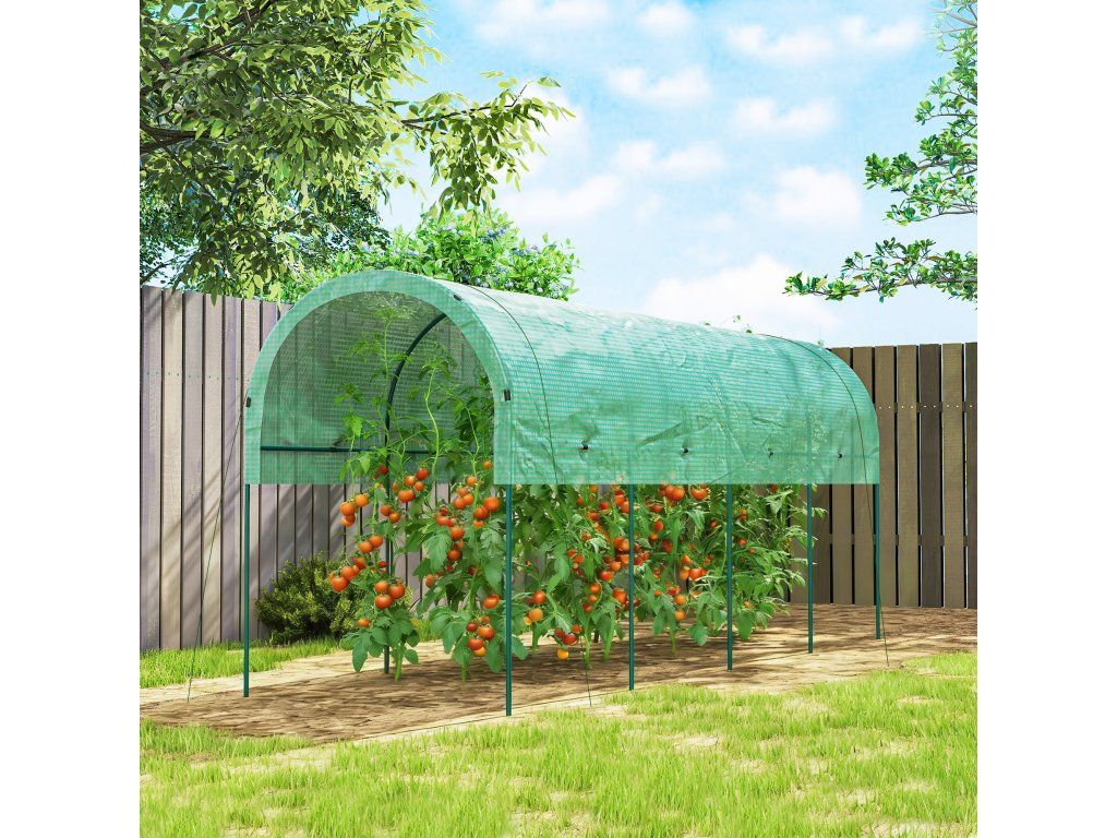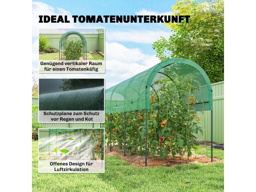 Objevte skleník na rajčata, který splní všechna vaše přání! Tento speciálně navržený skleník nabízí dostatek vertikálního prostoru pro pěstování rajčat a dalších rostlin. Vaše rostliny budou díky klenuté střeše s vodotěsným krytem chráněny před deštěm a ptačím trusem. O stabilitu se nemusíte starat: pomocí zemních kolíků zajistěte rám na místě chráněném před větrem a brzy si budete užívat domácí rajčata.