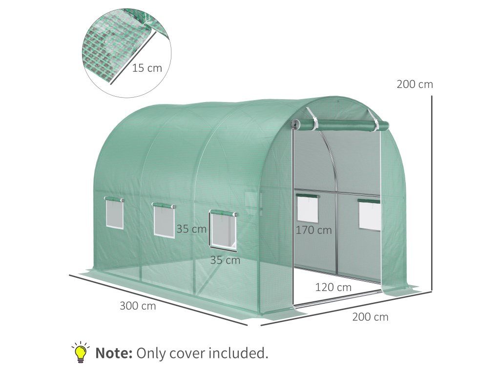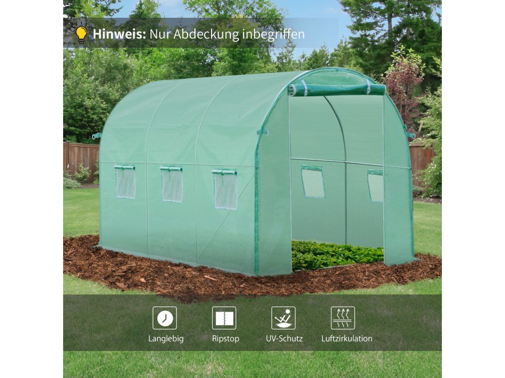 Bojíte se, že si budete muset koupit nový skleník, pokud se kryt poškodí? Tento kryt na skleník nabízí cenově výhodné a praktické řešení. Kryt s okny a vstupem na zip je ideální jako náhrada, pokud již vlastníte kompatibilní rám skleníku. UPOZORNĚNÍ: Pouze kryt, rám není součástí dodávky! Tento produkt je určen jako náhradní kryt pro stávající kompatibilní skleník.
