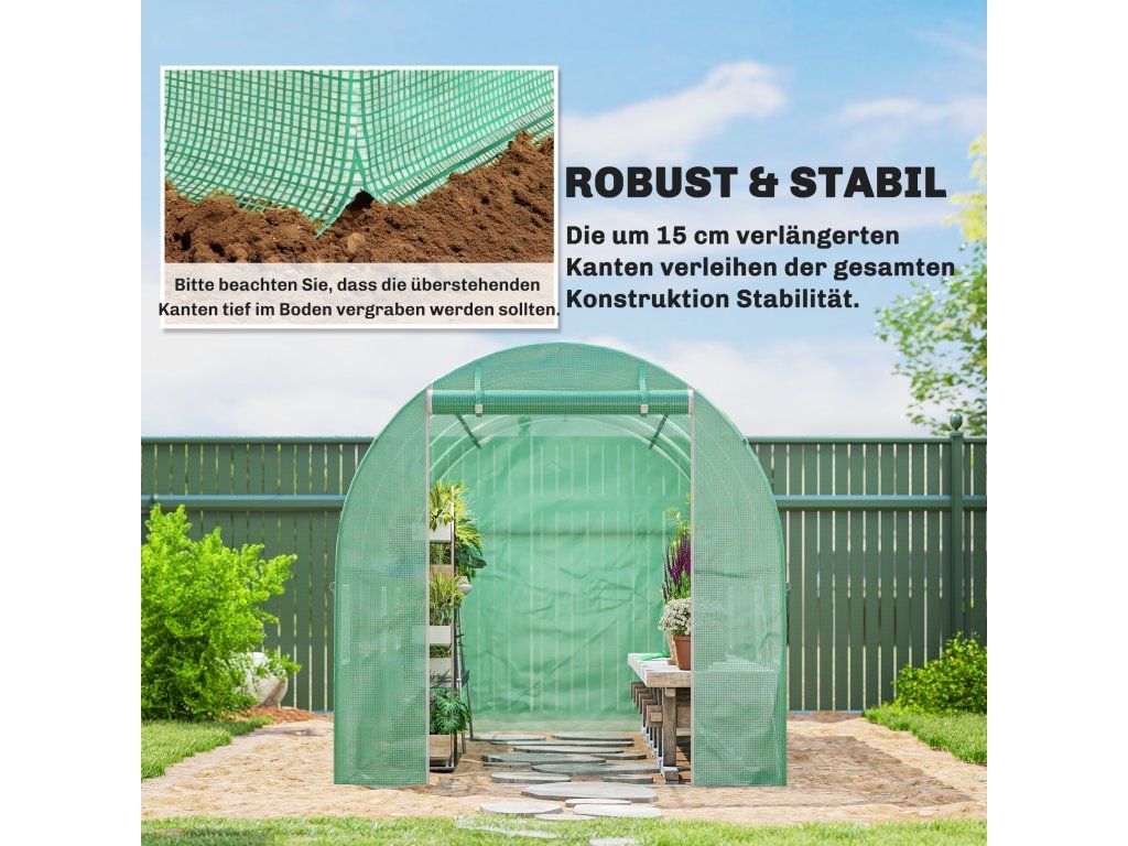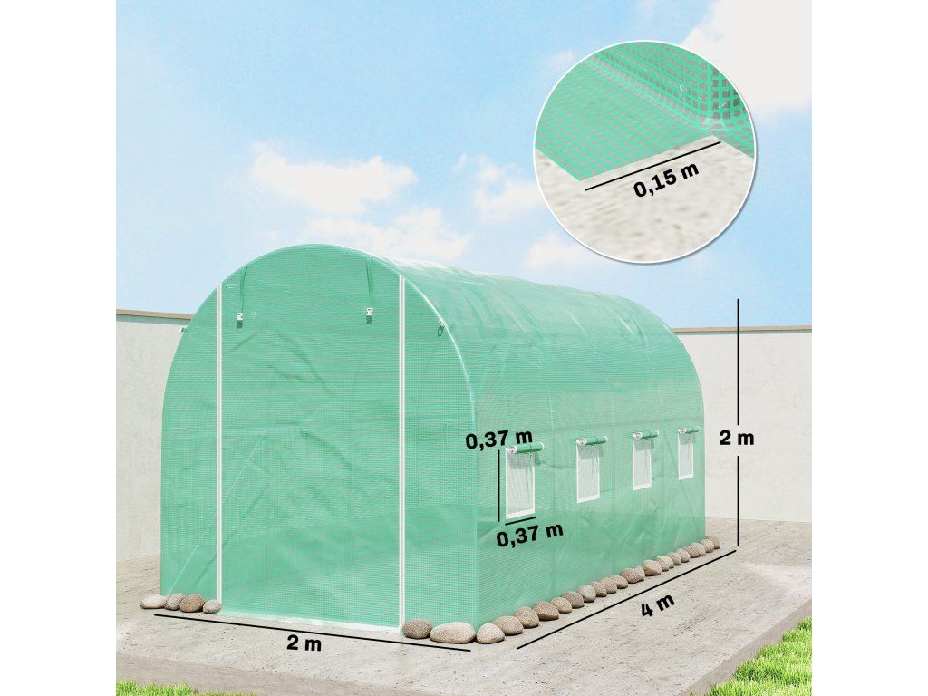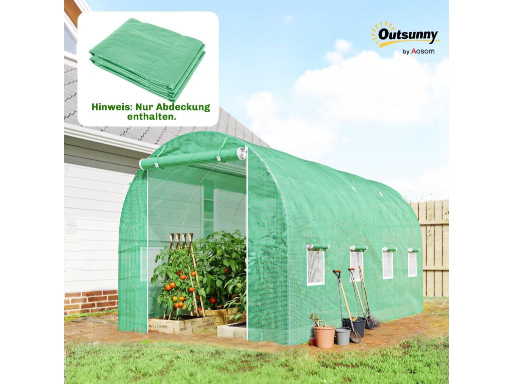 Náhradní plachta s okny: Účinně reguluje teplo a vlhkost. Dvě řady s celkem osmi okny ve fólii pro skleníky zajišťují optimální větrání a vytvářejí ideální klima uvnitř skleníku.