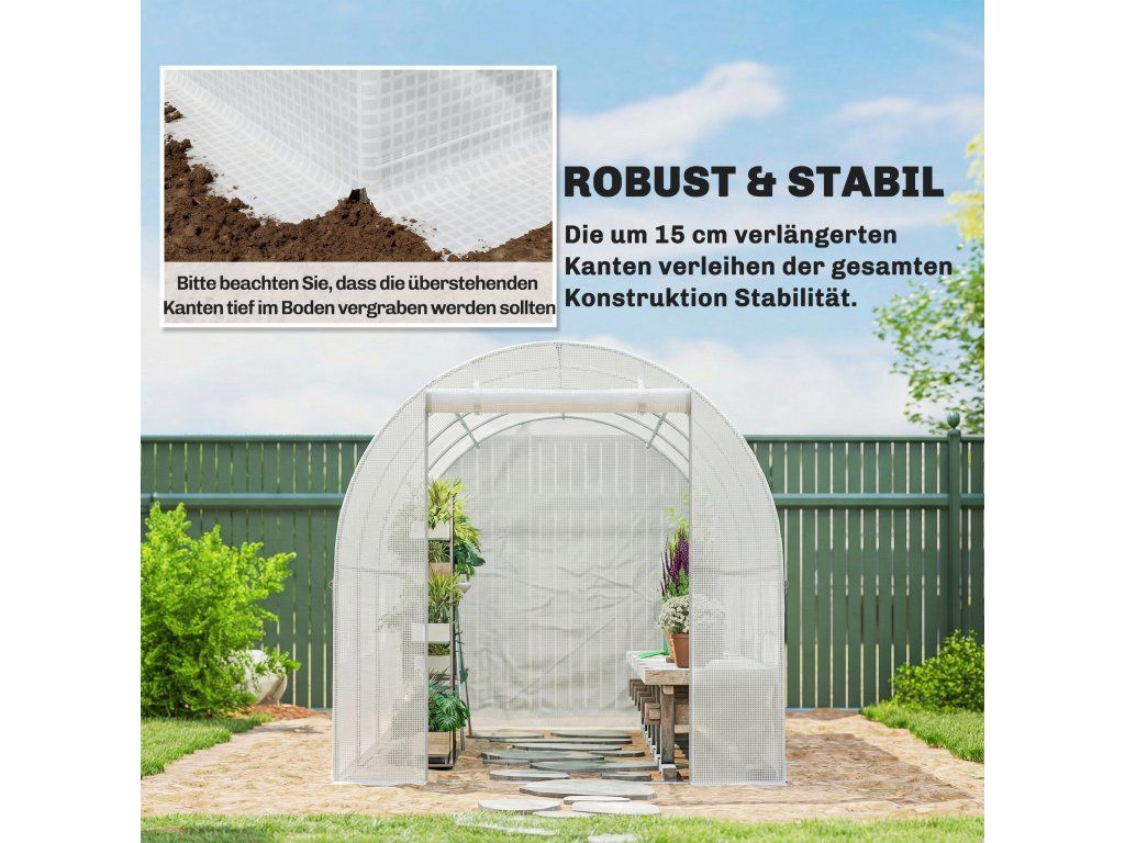 Náhradní plachta s okny: Účinně reguluje teplo a vlhkost. Dvě řady s celkem osmi okny ve fólii pro skleníky zajišťují optimální větrání a vytvářejí ideální klima uvnitř skleníku.