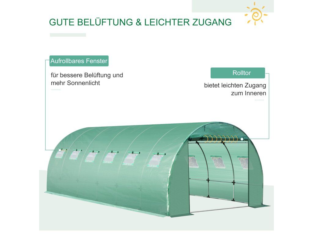 Rolovací vstupní dveře: Velkoryse dimenzované rolovací dveře z fólie se zipem usnadňují přístup do skleníku a lze je nahoře zajistit tak, aby zůstaly trvale otevřené.