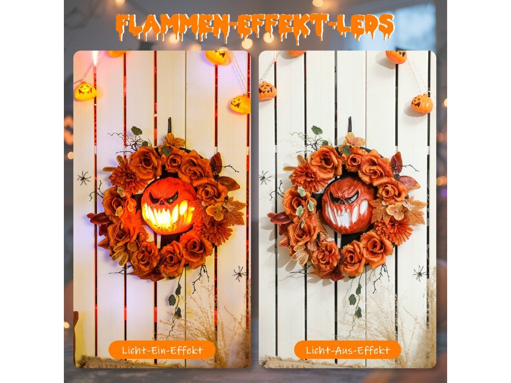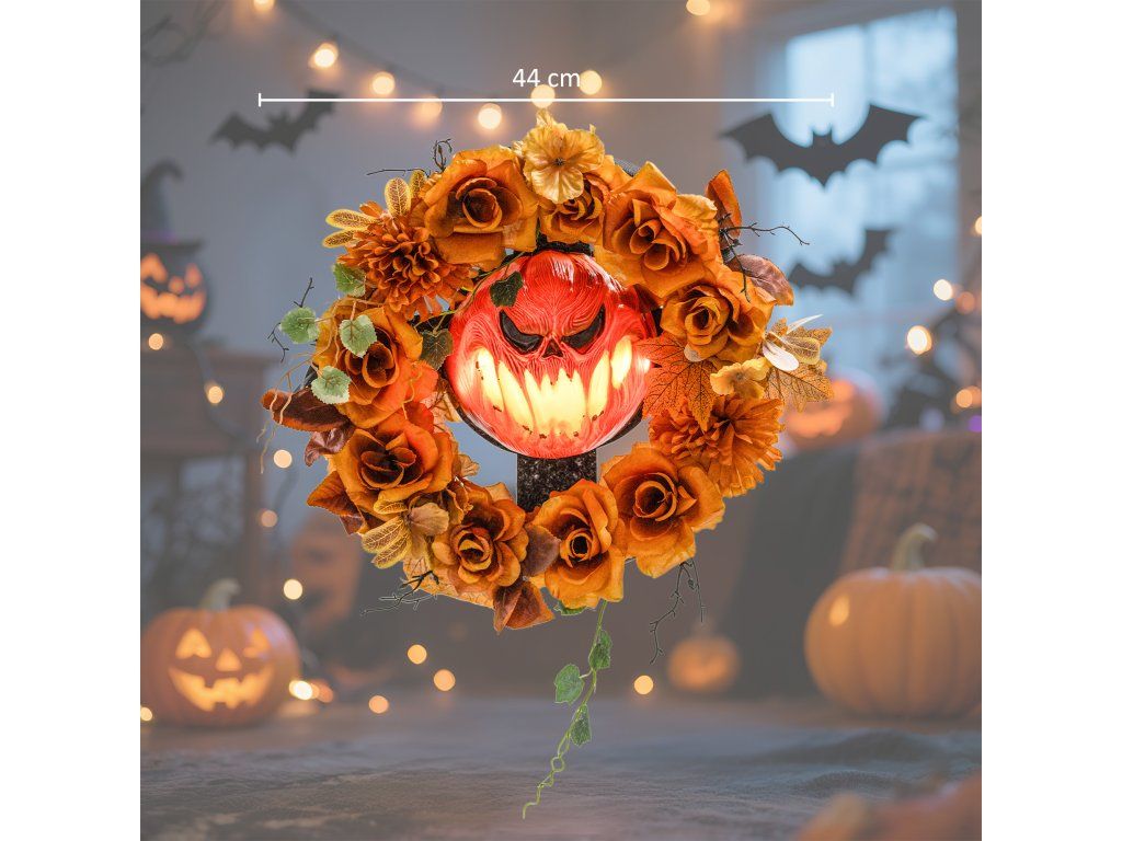 Už vás nebaví nudné, nevýrazné halloweenské dekorace? Konvenční dekorace často nedokážou vytvořit strašidelnou atmosféru. Pozvedněte svůj halloweenský zážitek se závěsným dýňovým věncem. Tento barevný věnec je vybaven 44 LED diodami, které blikají jako plameny, a vrhá strašidelnou záři, která vytváří podmanivou a strašidelnou atmosféru, jež potěší vaše hosty a učiní Halloween nezapomenutelným.