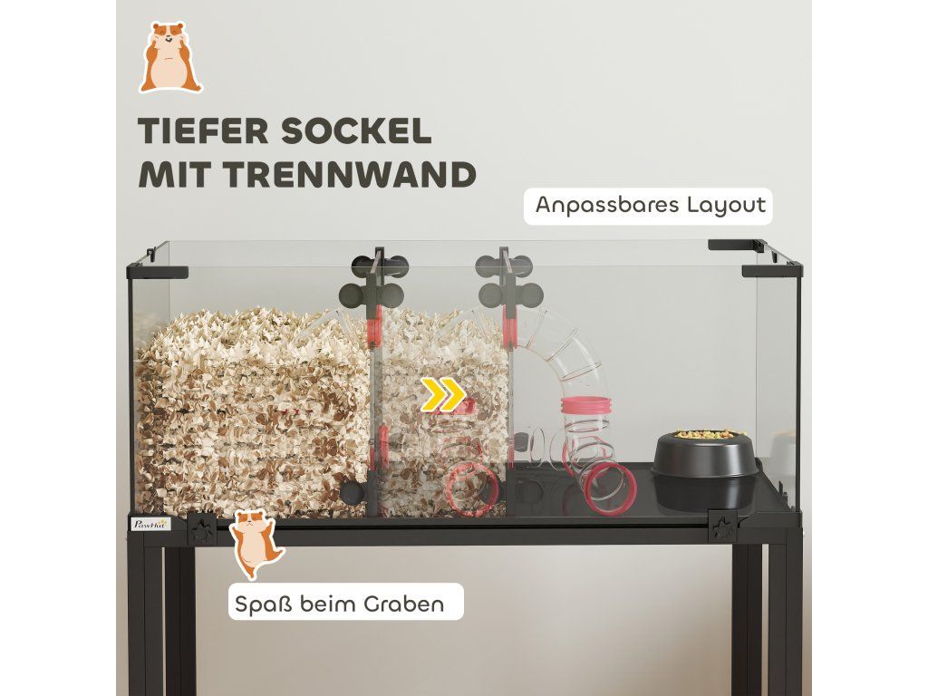 Hluboká základna s přepážkou: Tato klec je vybavena 26 cm hlubokou skleněnou základnou a pohyblivou přepážkou, takže si ji můžete přizpůsobit a nabízí dostatek podestýlky, aby si váš křeček mohl zahrabat a užívat si ji.
