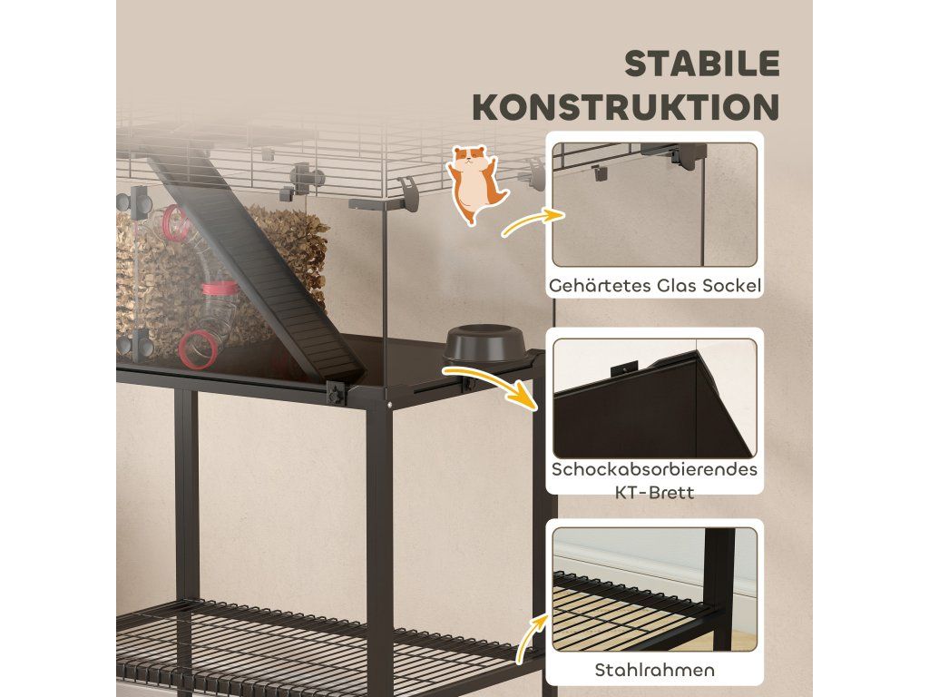 Silný a přehledný design: Tato klec pro hlodavce je vyrobena z robustního tvrzeného skla a ocelového drátu a doplněna tlumicí deskou KT. Je stabilní a odolná proti kousání, takže můžete snadno vidět své mazlíčky a komunikovat s nimi.