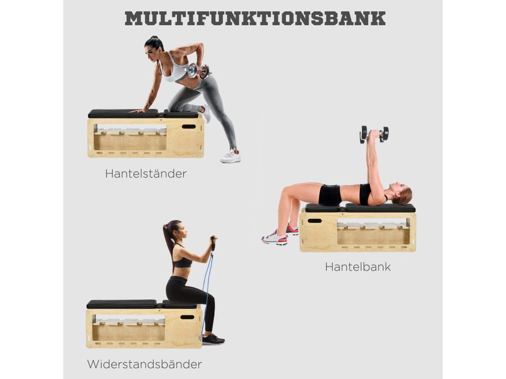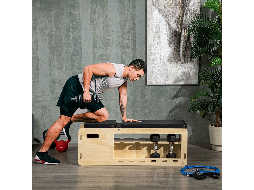 Odolná konstrukce: Tato lavice je vyrobena z masivního dřeva, takže vydrží intenzivní trénink a poskytuje odolné tréninkové řešení.