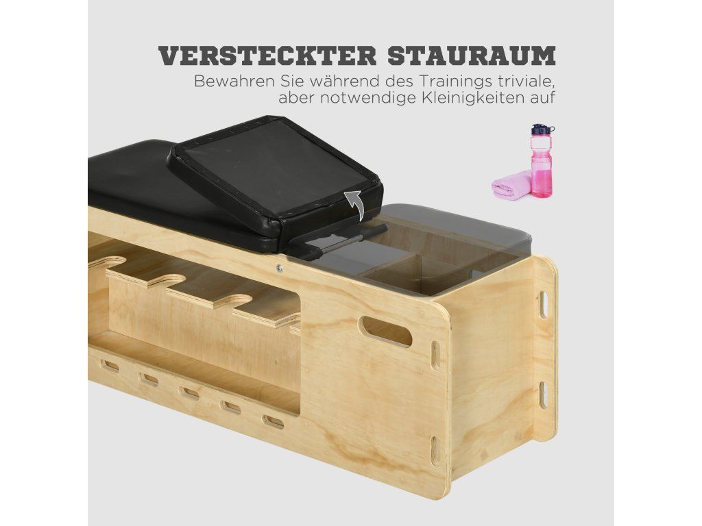 ✔ Vestavěný stojan na činky a úložný box pro větší pohodlí.