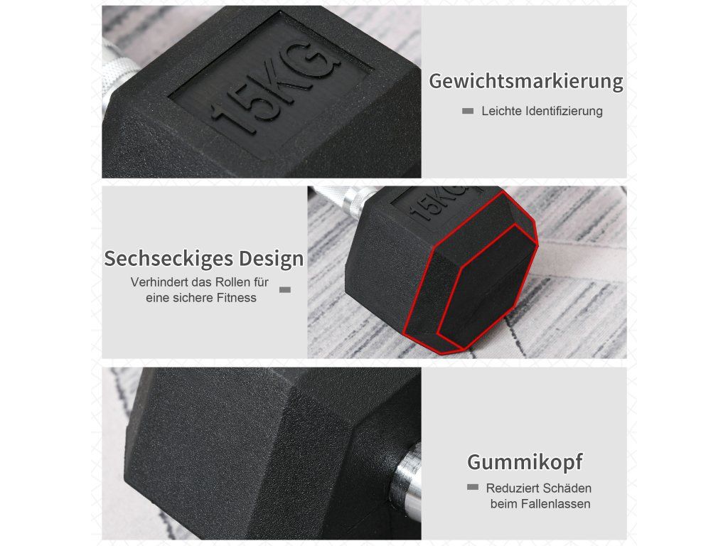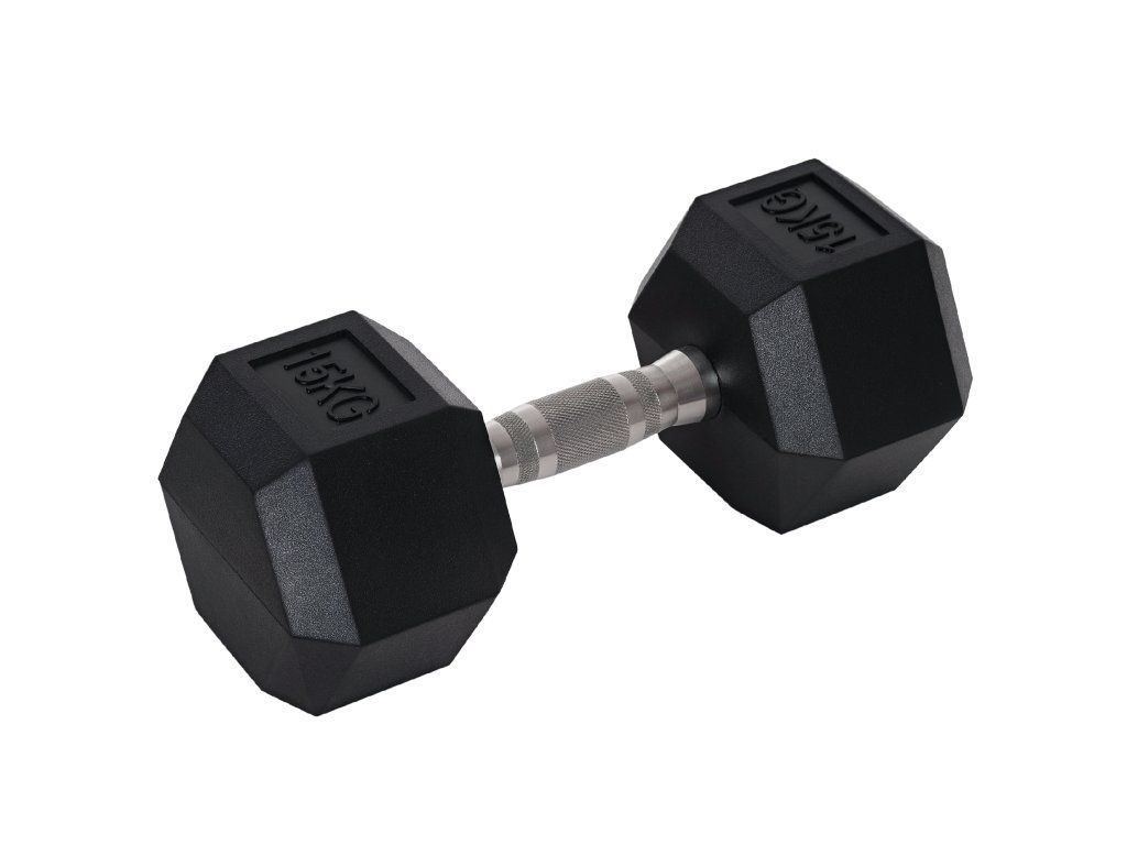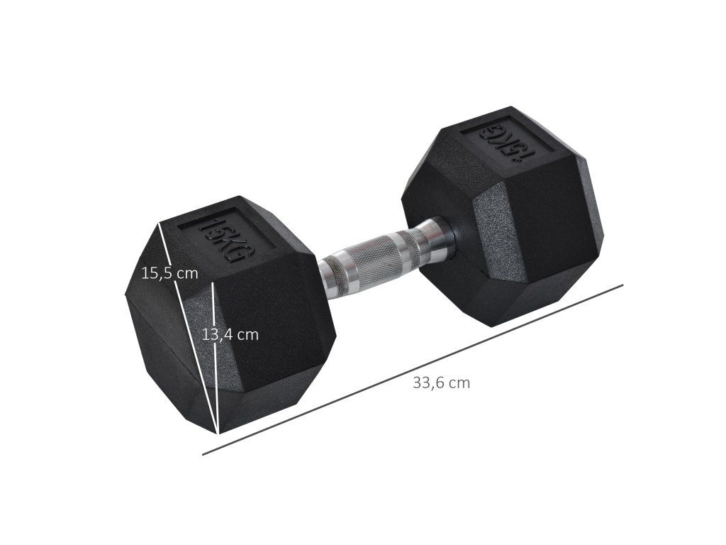 Specifikace produktu: Hmotnost činek: 1 x 15 kg; Délka rukojeti: 12,8 cm; Šestihranná velikost: Ø15,5 cm (úhlopříčka)