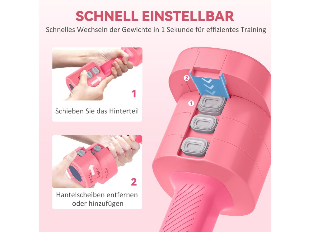 Nastavitelná závaží 4 v 1: Každá činka obsahuje šest závaží o hmotnosti 0,25 kg, nastavitelných na 1 kg, 1,5 kg, 2 kg a 2,5 kg na činku (pár celkem váží 2 kg, 3 kg, 4 kg nebo 5 kg). Ideální pro postupné zvyšování síly a rozmanité domácí cvičení.