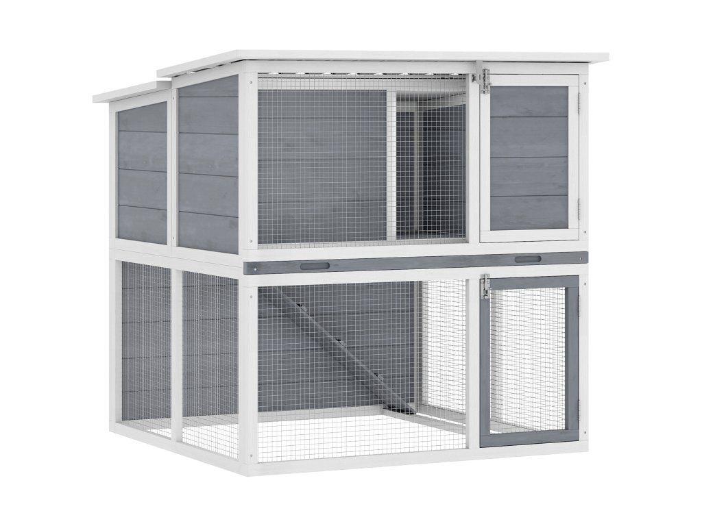 Dvoupatrová dřevěná králíkárna 98 x 95 x 102,5 cm | šedá