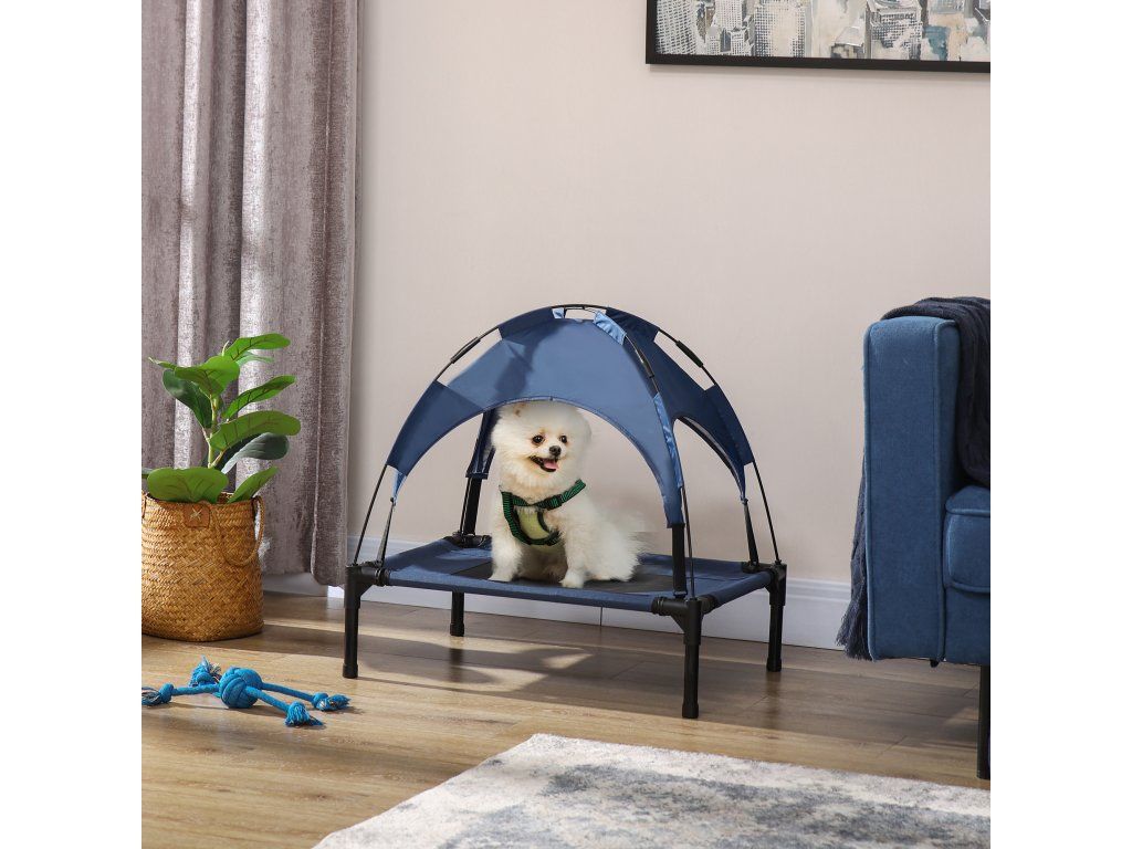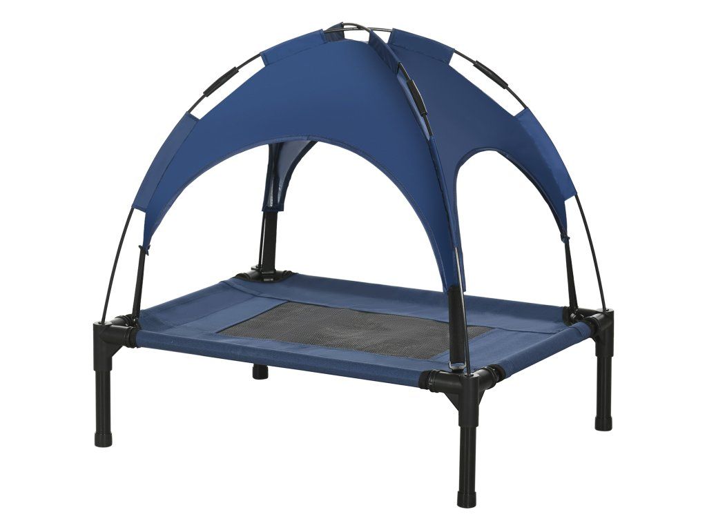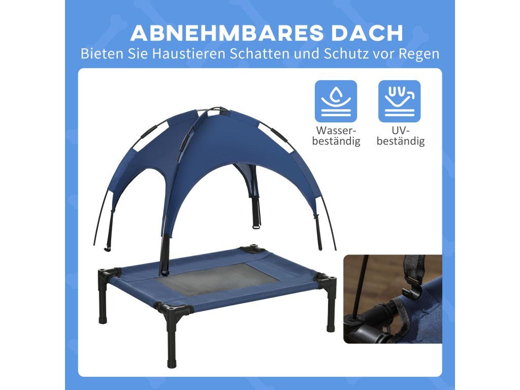 Dopřejte svému mazlíčkovi dokonalou relaxaci s naším stylovým pelíškem! Tento vyvýšený psí pelíšek je podepřen čtyřmi kovovými trubkami s práškovým nástřikem, kolem kterých je omotaná prodyšná síťovina. Stříška poskytuje vašemu mazlíčkovi příjemný stín i v létě a lze ji snadno nastavit. Robustní konstrukce zabraňuje kymácení a převrácení, takže váš chlupatý kamarád může klidně spát.