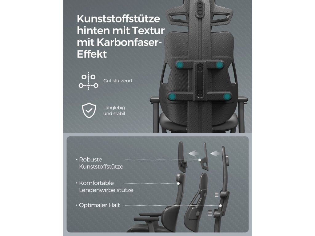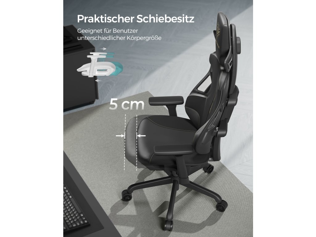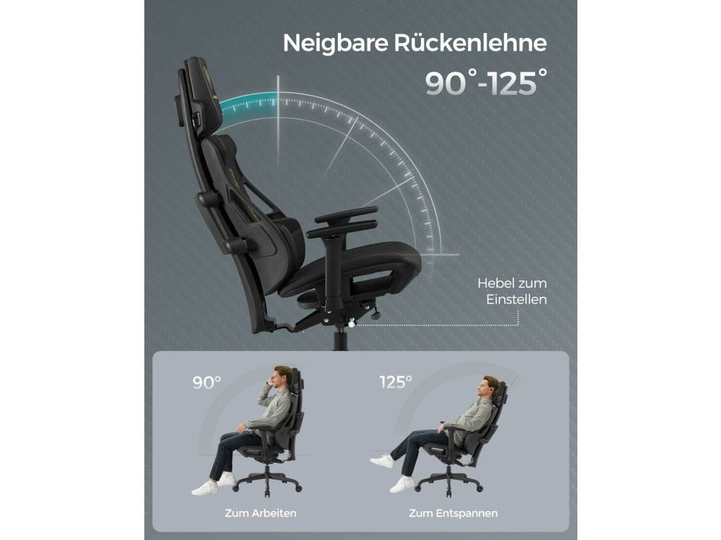 High Tech vzhled Vnější plášť je vyroben z imitace plastu z uhlíkových vláken, což nabízí velmi high-tech estetiku, dodejte svému interiéru jedinečný nádech modernosti s touto herní židlí.Dvoupolohové opěradlo Opěradlo lze sklopit o 125°, což vám pomůže najít pohodlnou polohu pro odpočinek a poskytne vám dokonalou oporu a pohodlné držení těla při hře, práci nebo přestávce.Závěsné opěrky zad Čtyřbodová závěsná opěrka ve tvaru písmene H účinně rozkládá tlak na záda. poskytuje hráči pevnou a pohodlnou bederní opěrku při dlouhých herních sezeních.Nastavitelná hloubka sedáku Sedák lze posunout o 5 cm dopředu a dozadu, čímž se zvýší hloubka sedáku pro vysoké lidi a herní židle se stane ergonomičtější.Vícenásobné nastavení Výškově nastavitelná opěrka hlavy o 5 cm, 3D područky nastavitelné na výšku o 5 cm a dopředu o 7 cm, možnost otáčení o 30°; tento design nabízí individuální sezení pro každého.| Kategorie: | Herní křesla |