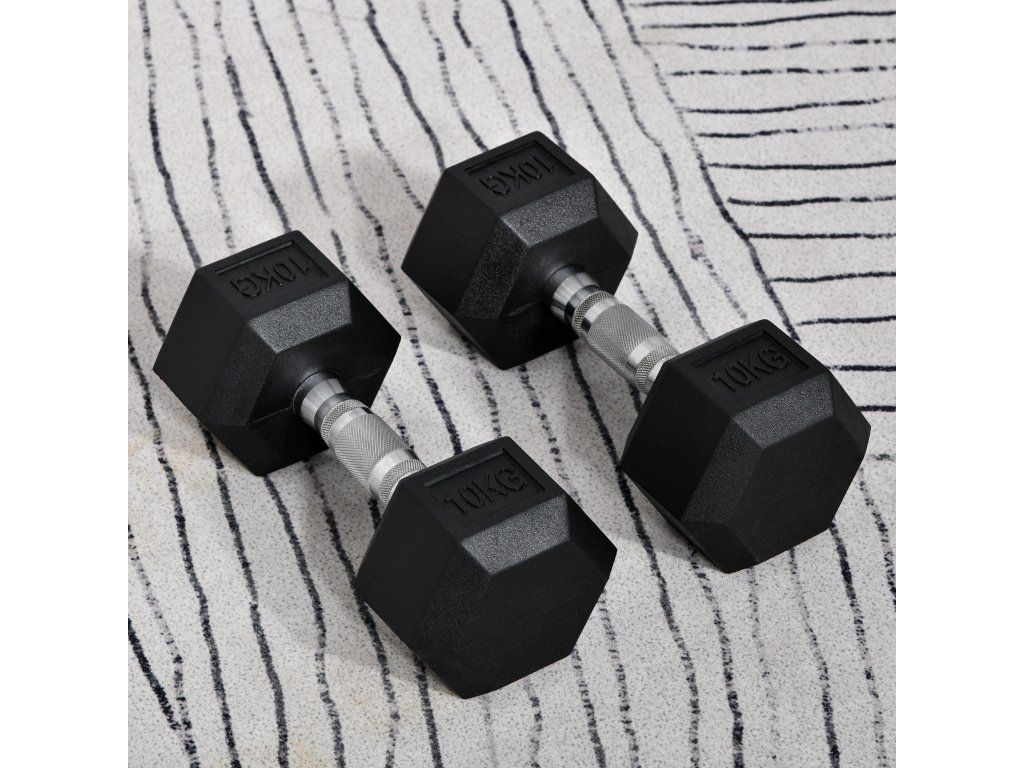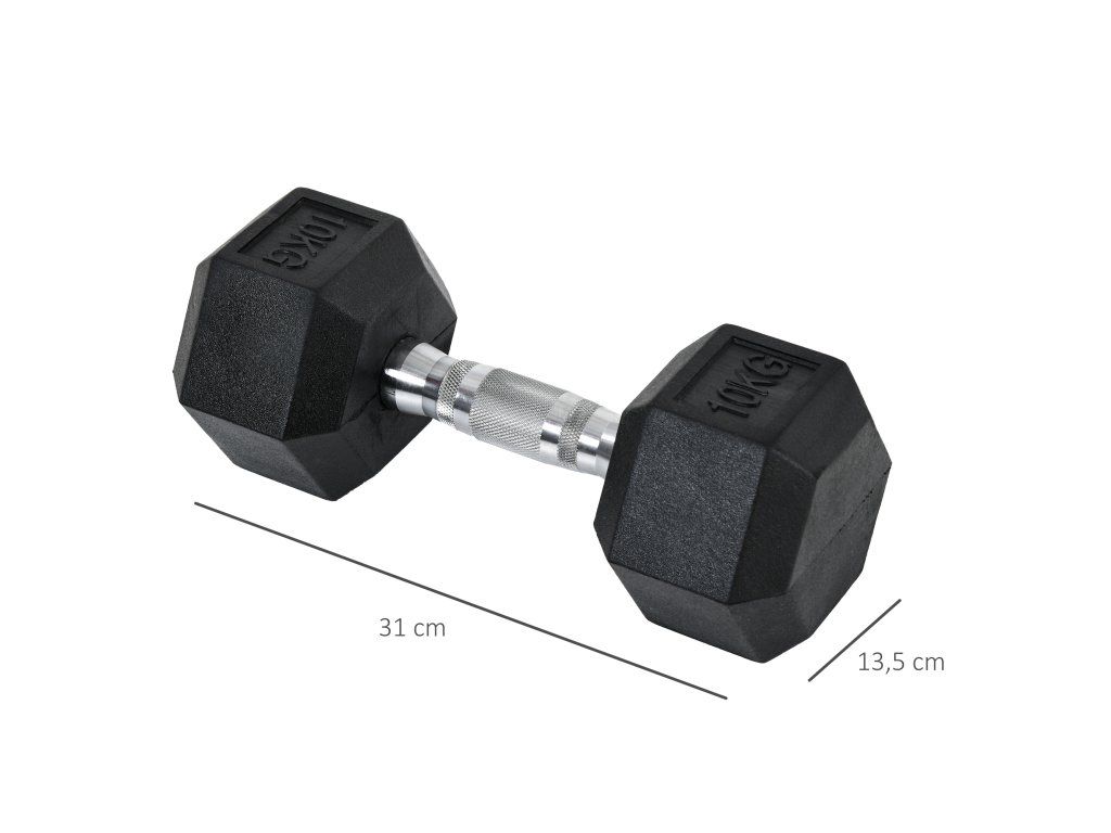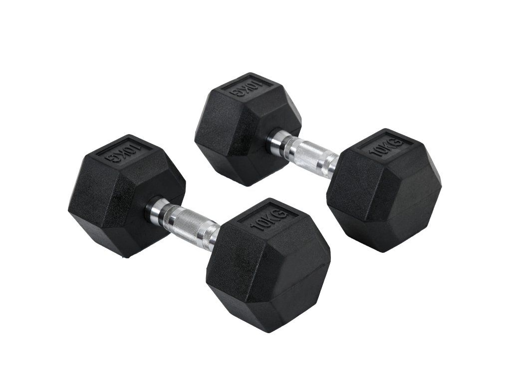 Tato šestihranná činka s gumovými úchyty je ideální pro váš fitness program a je vhodná pro cvičení doma, v posilovně i v kanceláři. Každá činka je vyrobena z kovu a gumy, díky čemuž je odolná a odolná proti poškrábání podlahy. Vroubkovaný povrch zajišťuje vaši bezpečnost při provádění cviků, jako jsou zdvihy s jednoručkami, trhnutí hlavou a tricepsové doskoky. Tato sada činek je ideálním způsobem, jak začlenit cvičení s jednoručkami do vašeho tréninku.