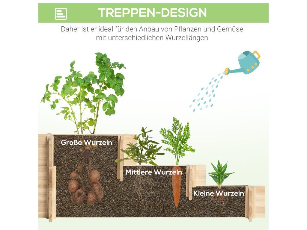 Dlaždicový design: Tři úrovně v různých výškách umožňují pěstování kořenů s různou délkou – od krátkých po dlouhé.