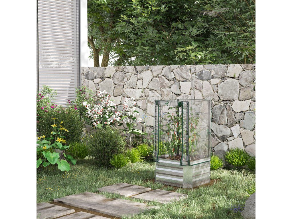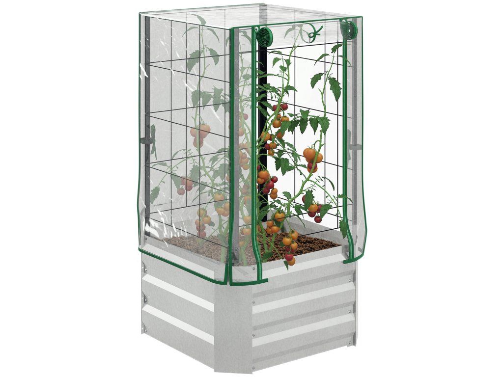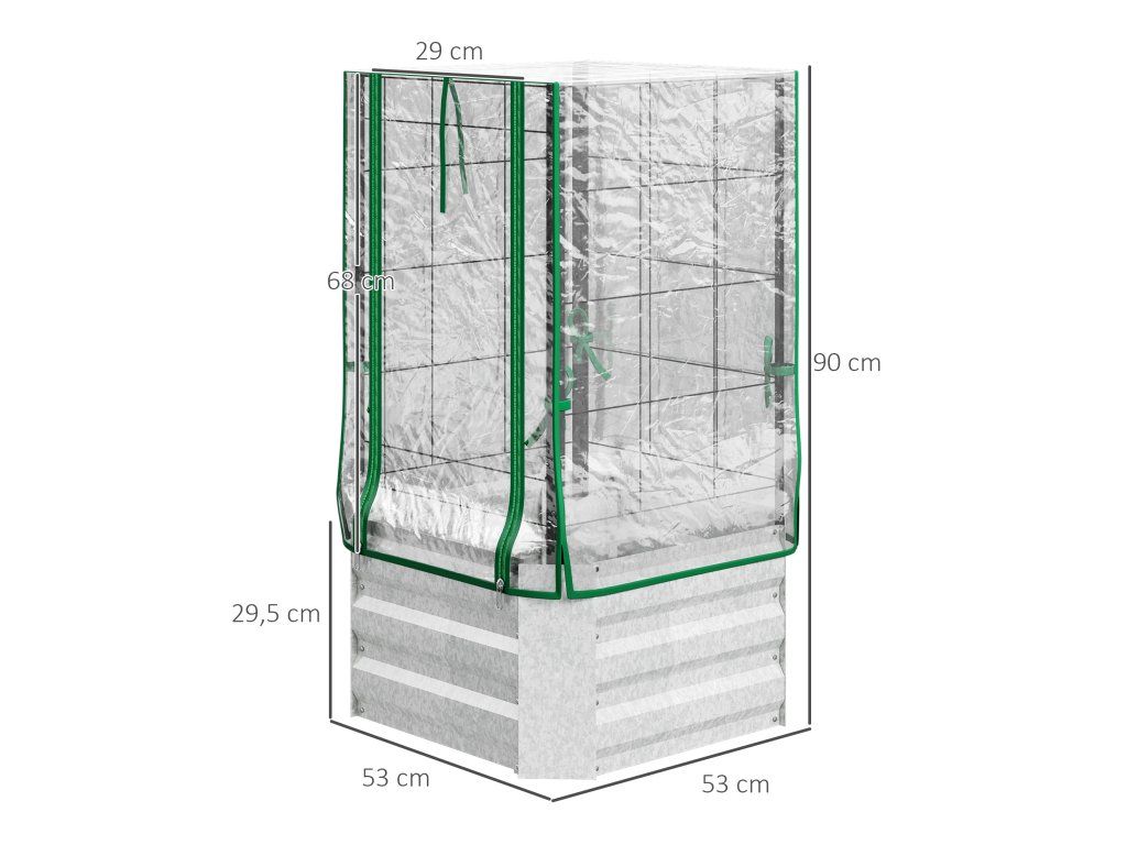 Sada vyvýšeného záhonu se skleníkem 53 x 53 x 90 cm | stříbrno-zelená