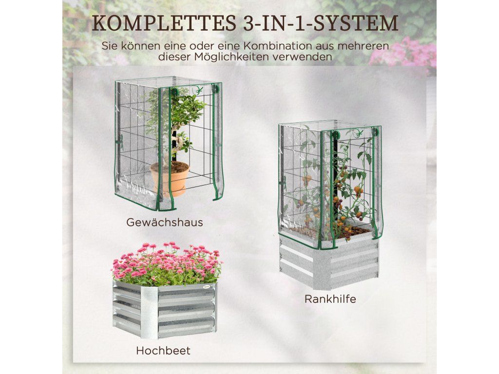 Kompletní sada 3 v 1: Vyvýšený záhon + skleník + treláže. Snadné zahradničení, prodloužená vegetační doba a ochrana rostlin před škůdci. Věnujte se svému zelenému koníčku, kdykoli chcete, bez ohledu na počasí nebo roční období.